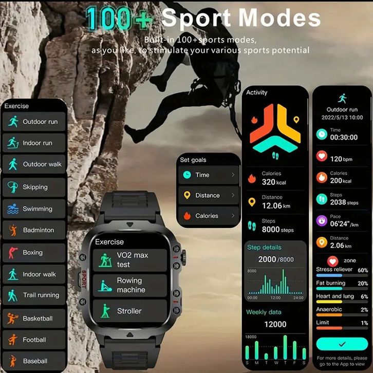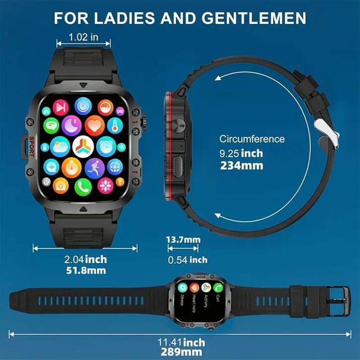 LIGE Jam Tangan Pintar Luar Ruangan Pria Olahragawan 1.96 Jam Tangan Pintar Militer For Ponsel Pintar IP68 Tahan Air