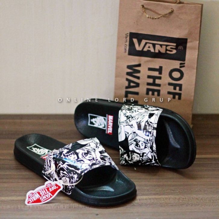 Sandal Vans Stylish Marvel Slides Sendal Pria Wanita Slip On Sandal Snoopy Ootd Cewek Cowok Stylish Kasual Ukuran 39-44