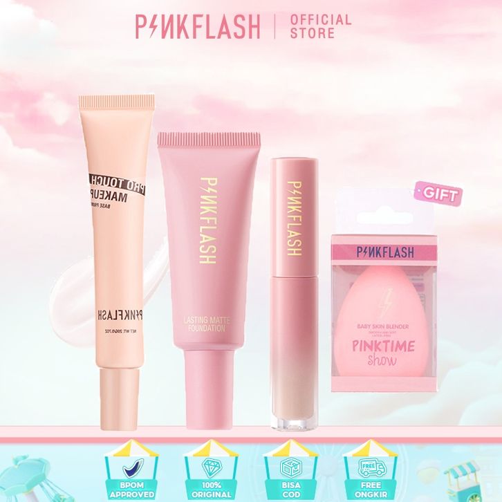 PAKET MAKEUP PINKFLASH FACE SET MATTE PRIMER + FOUNDATION + CONCEALER NATURAL TAHAN SEPANJANG HARI