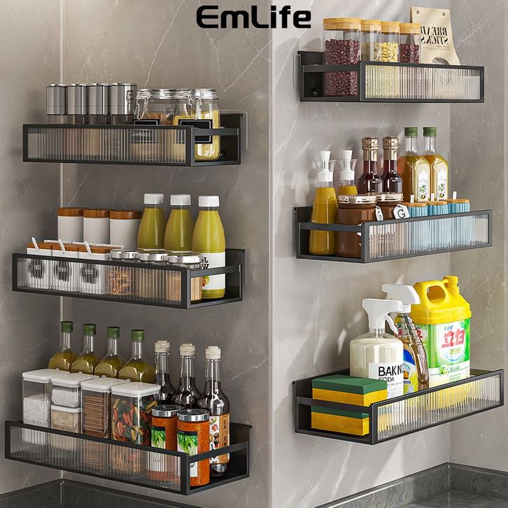 Rak bumbu Yang Terpasang Di Dinding Rak Penyimpanan Dapur Rak Bumbu Rak Rempah-rempah Bebas Pukulan Rumah
