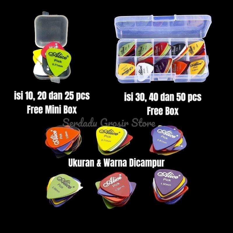 ALICE PICK GITAR AKUSTIK ISI 10 - 50 PCS SEMUA UKURAN DICAMPUR