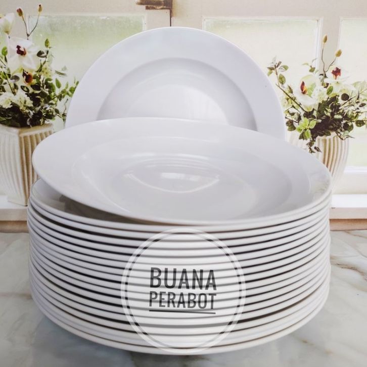 TERLARIS , PROMO 12 PCS PIRING MAKAN PLASTIK MIKA DIAMETER 23CM TAHAN LAMA