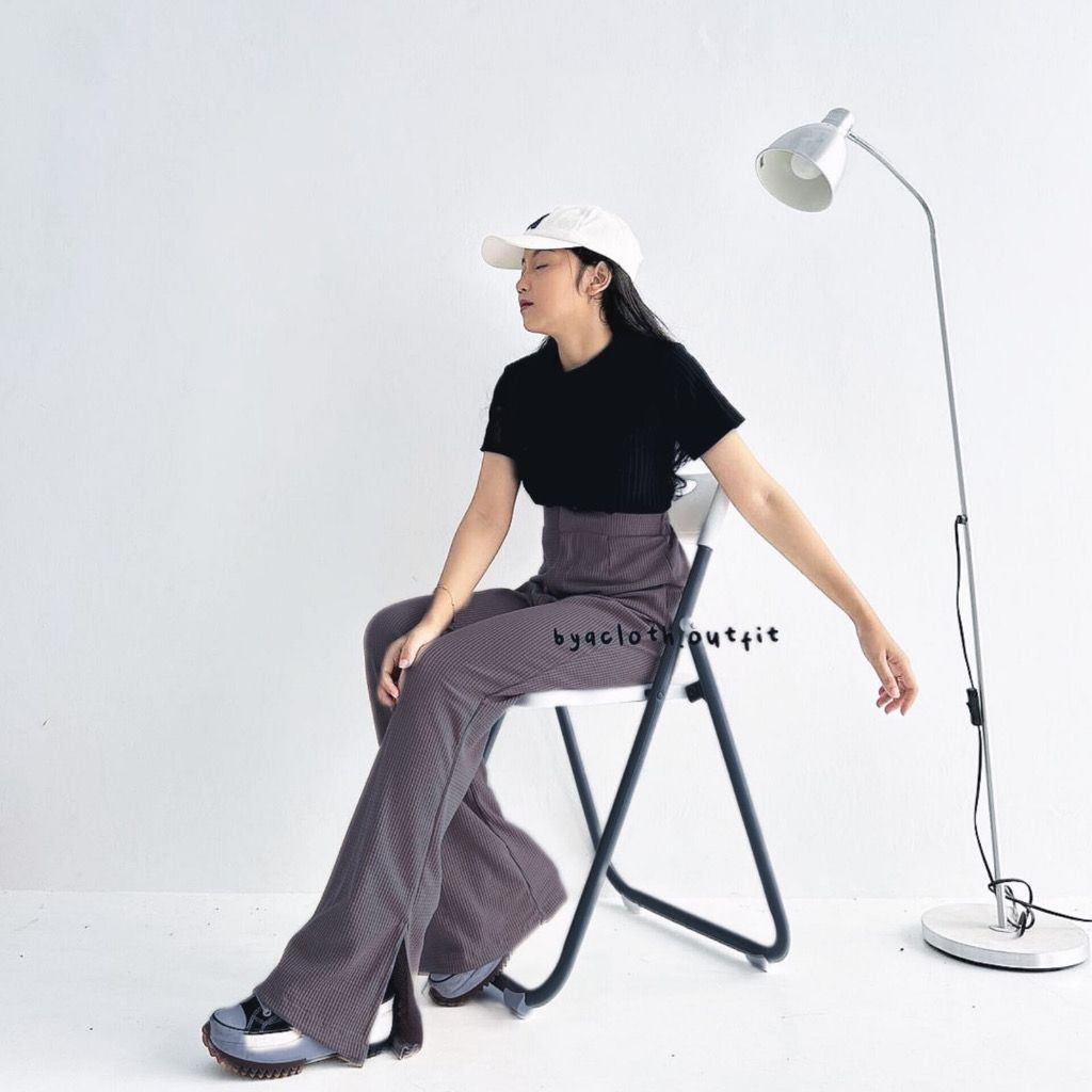 CELANA KNIT WAFFLE SLIT - CELANA KULOT KNIT RIB PANJANG - KNIT PANTS - LOOSE PANTS HIGHWAIST KULOT PANJANG BASIC STRECH
