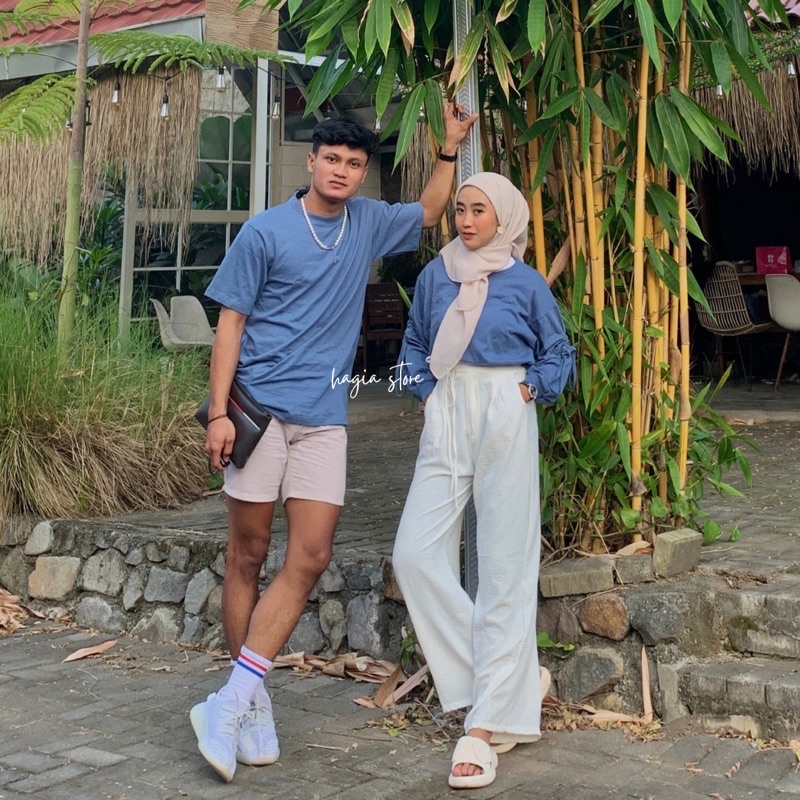 NORA COUPLE BY HAGIA | SUDAH SEPASANG KAOS SERUT WANITA DAN KAOS PRIA POLOS