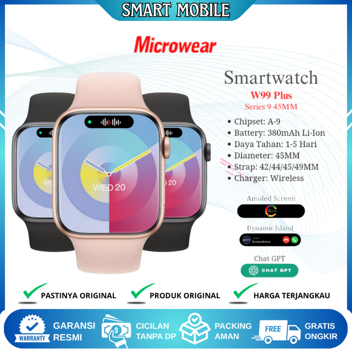 Smartwatch Microwear W99 Plus 45mm 2.0 Jam Tangan Smart Digital Pria Wanita Original