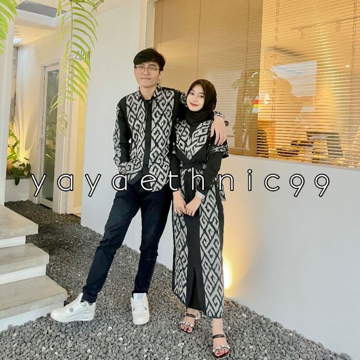 Set couple tenun baju kondangan,clara dress black mamba,busana wanita - Batik Keluarga Pasangan Anak Modern Jumbo