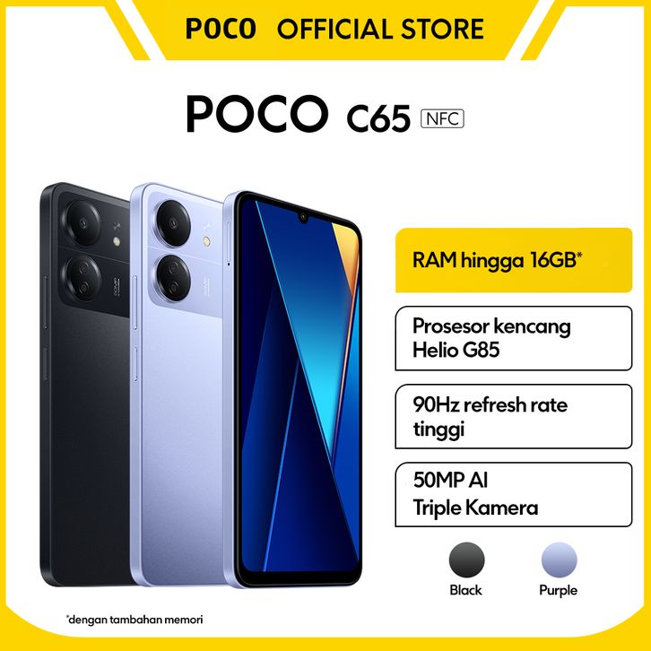 Poco Official Store HP Tanpa DP POCO C65 RAM hingga 16 GB Helio G85 90Hz Triple kamera