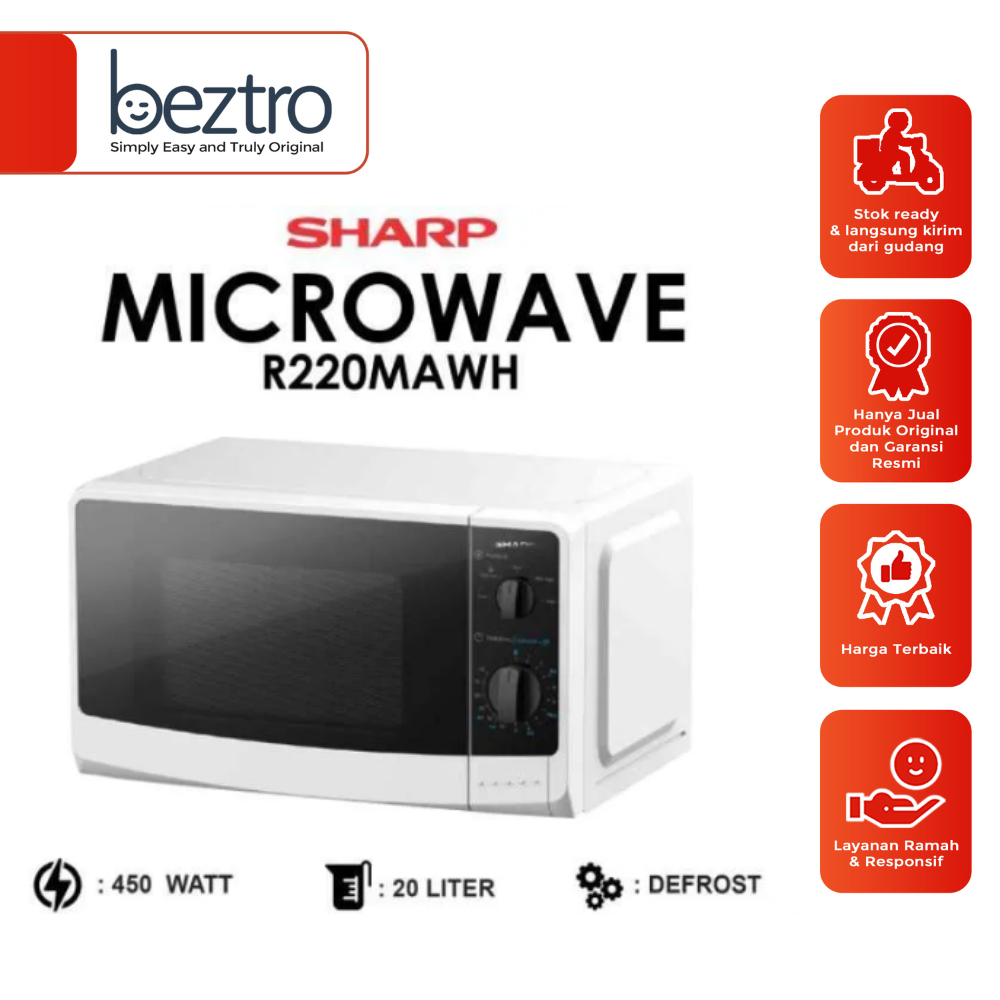 Sharp R220MAWH R-220-MA-WH – Microwave Solo 20 Liter 450 Low Watt Putih White R 220MA WH