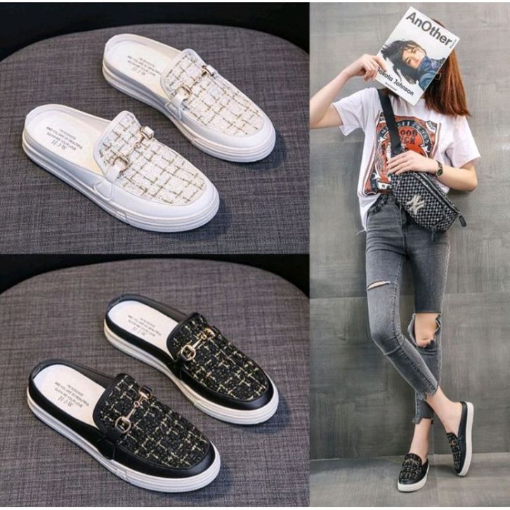 Sepatu Slip On Kekinian Wanita Sepatu Kiky Kasual Mary Janes Ootd Style Fashion Aksesoris Cewek Perempuan Ukuran 36-40