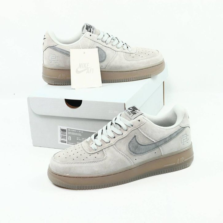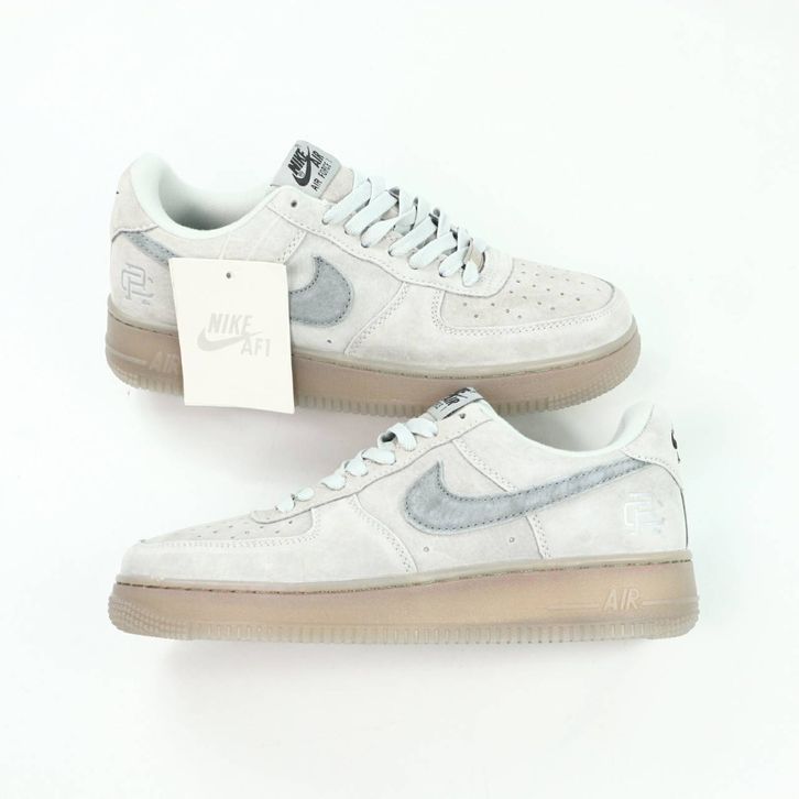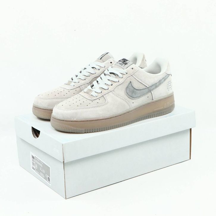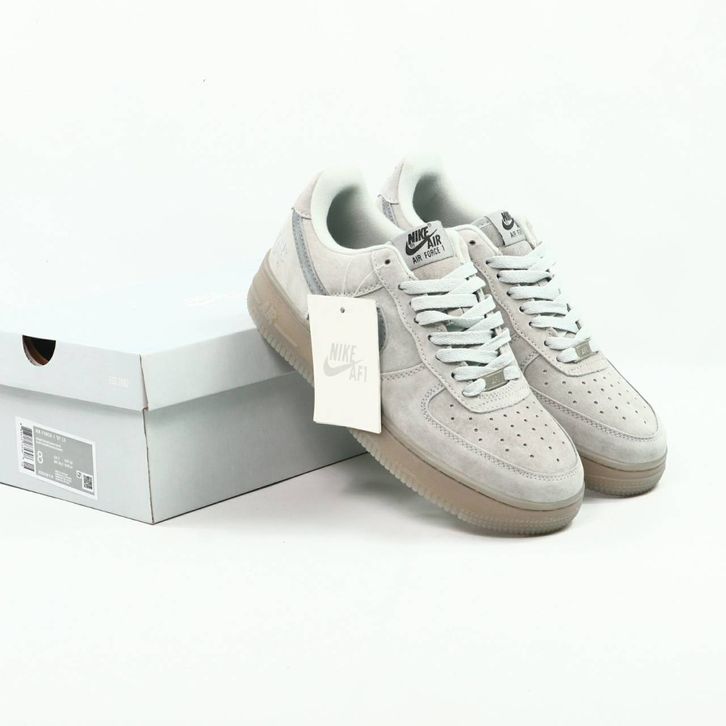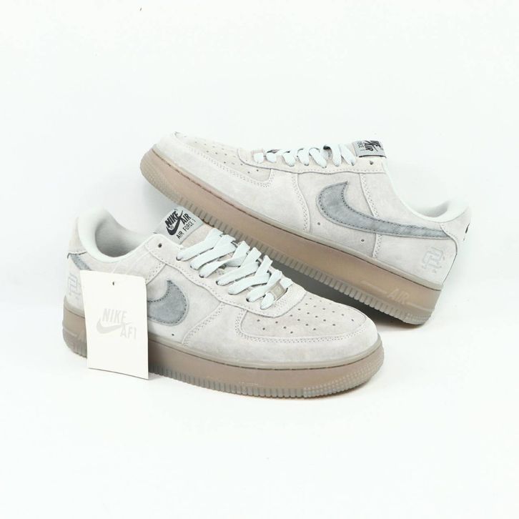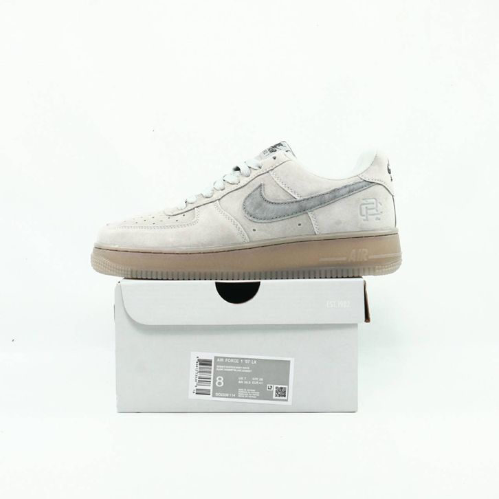 SEPATU NIKE AIR FORCE 1 LOW REIGNING CHAMP LIGHT GREY AA1117-118 ORIGINA BNIB FULL TAG BARCODE BAHAN LEATHER KULIT SUEDE