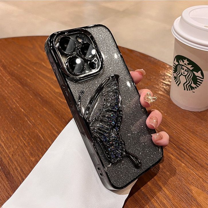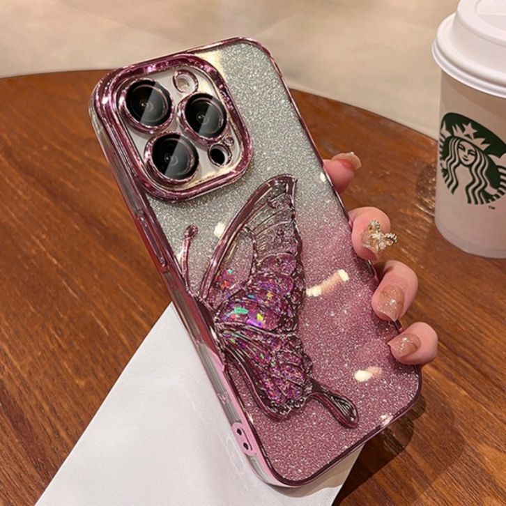 Luxury Quicksand Glitter Butterfly Case for iPhone 11 12 13 14 15 Pro Max Max plus Shinny Bling Clear Plating Soft case