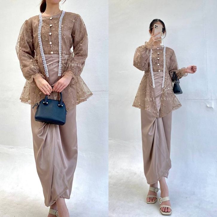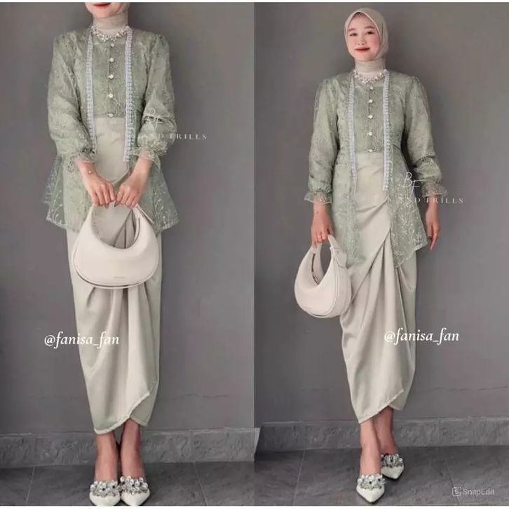 Kebaya Kutu Baru Set Wisuda Lamaran Tunangan 4in1 Brukat Adem Desain Elegan Modern
