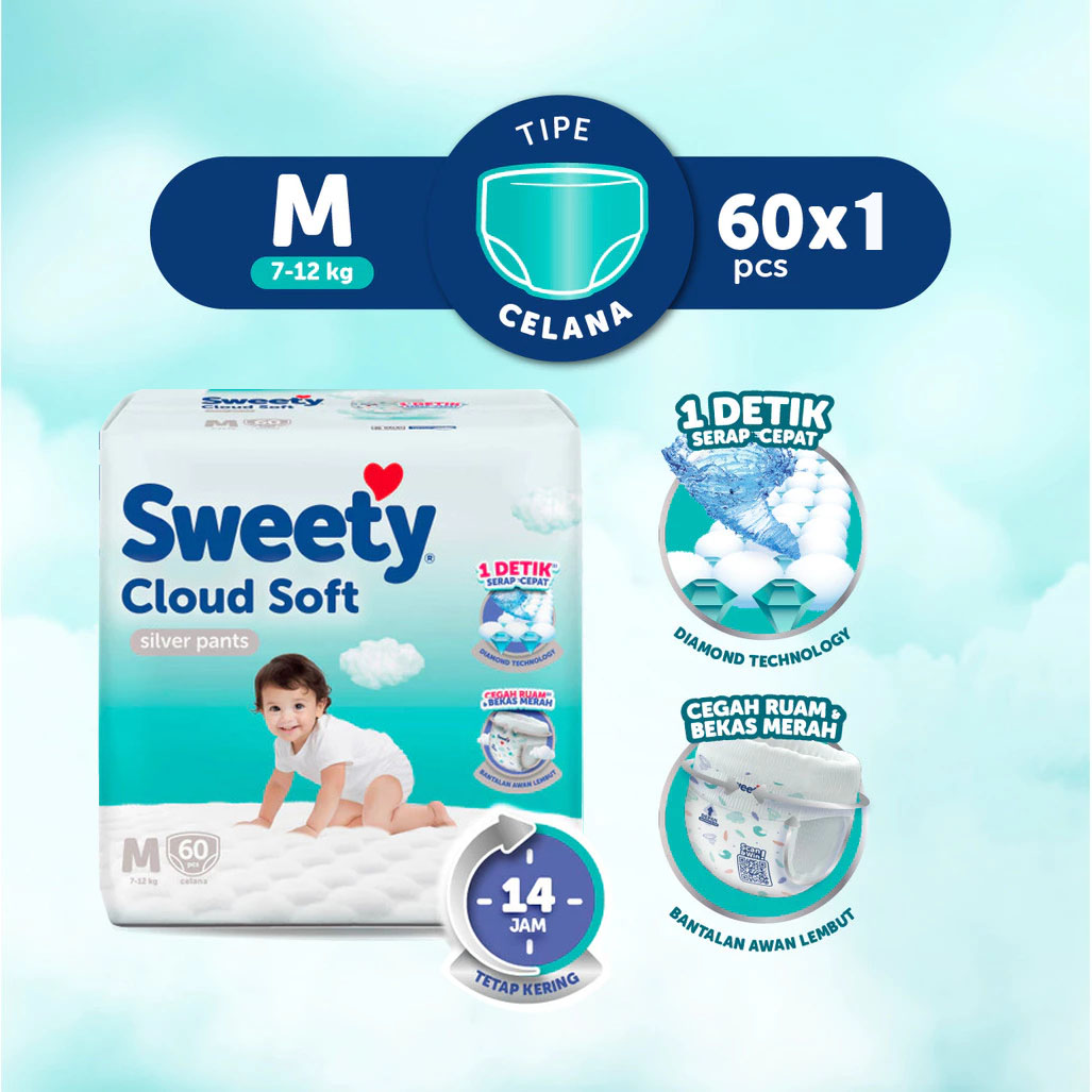 1 BALL SWEETY SILVER Pants Popok Cloud Soft Celana Sekali Pakai Diaper Baby Bayi Diapers S66 / M60 / L54 / XL42 / XXL32