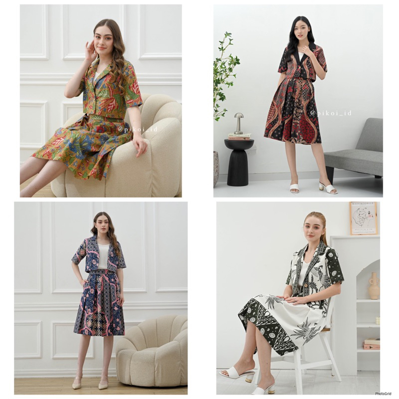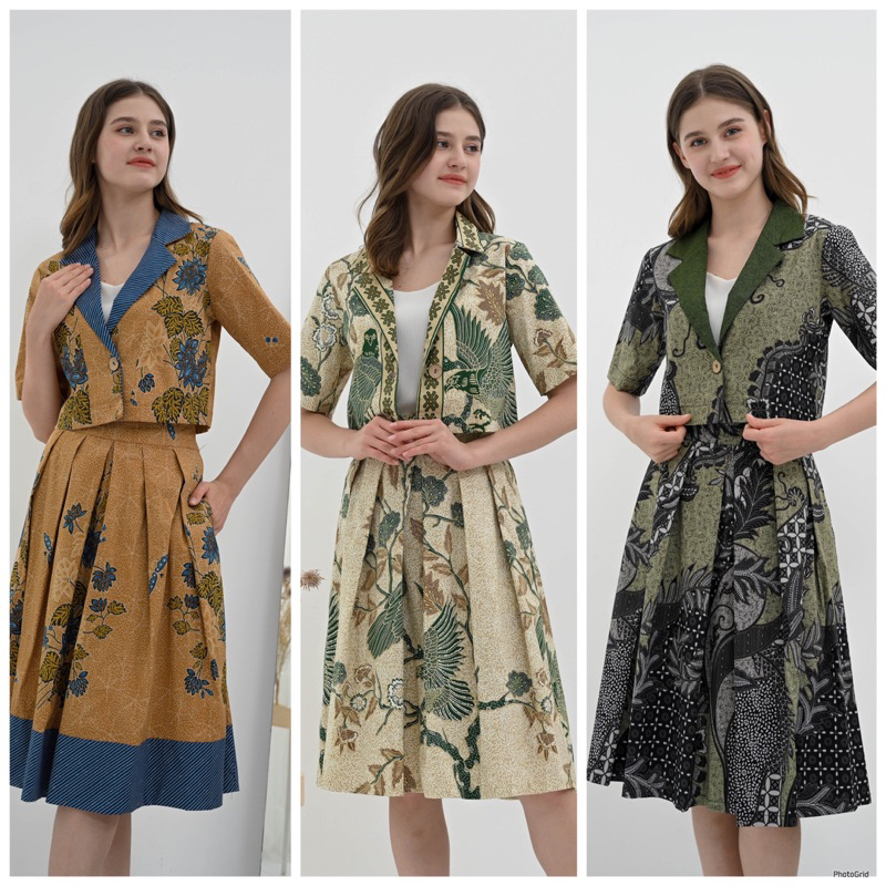 ATASAN BATIK WANITA MODERN CROP T0P KEMEJA KERAH BATIK SEMI OUTER BATIK
