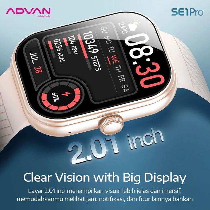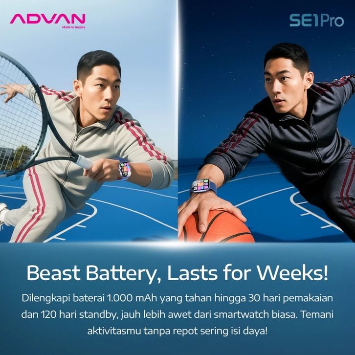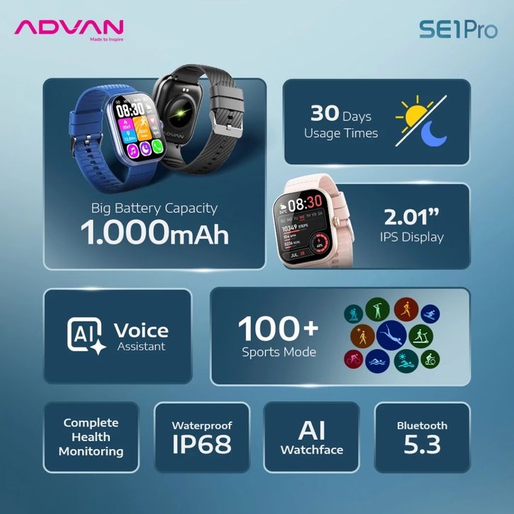 ADVAN Smartwatch SE1 Pro Baterai 1000mAh Tahan 30 Hari Bluetooth Call AI Watch Face 100+ Sports Mode - GARANSI RESMI