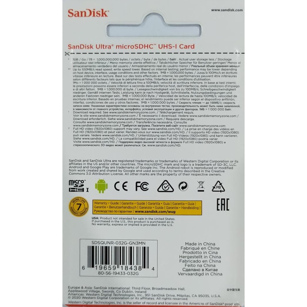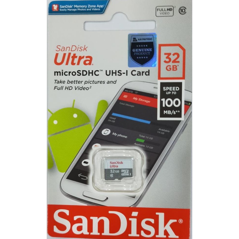 SANDISK ULTRA 100MBPS MICROSD CARD CLASS 10 - 32GB - QUNR