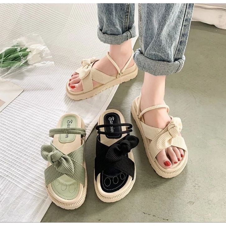 Sandal Wanita Wedges Korea Sendal Aulia Srandal Slop Cewek Outfit Aksesoris Acc Ootd Stylish Kekinian Size 36-40