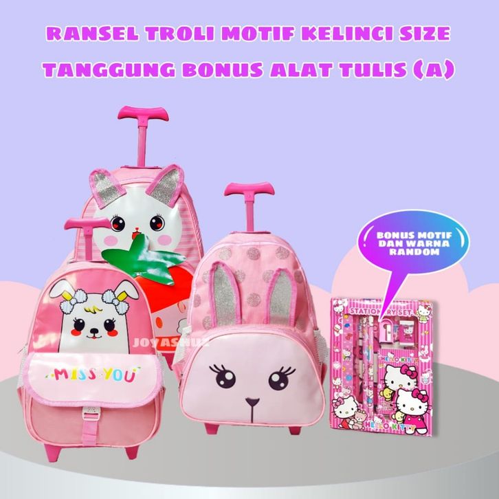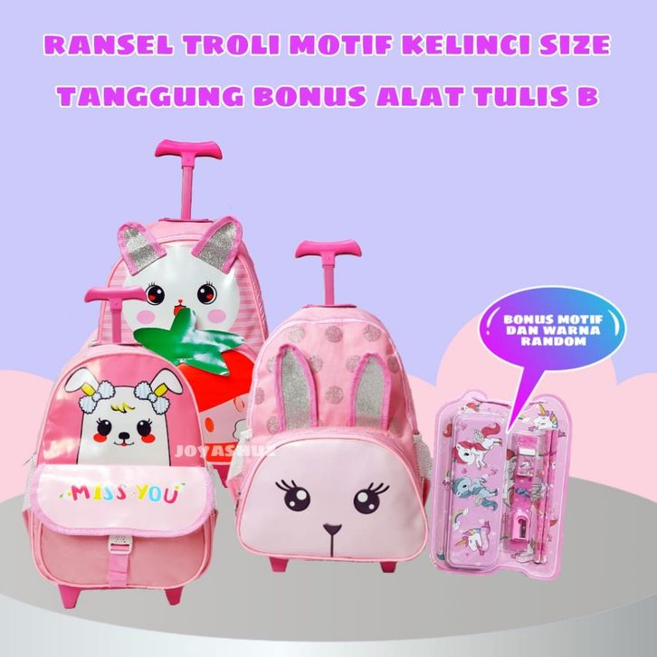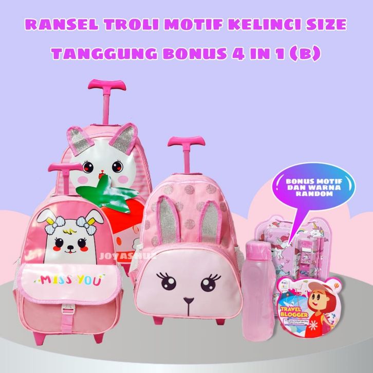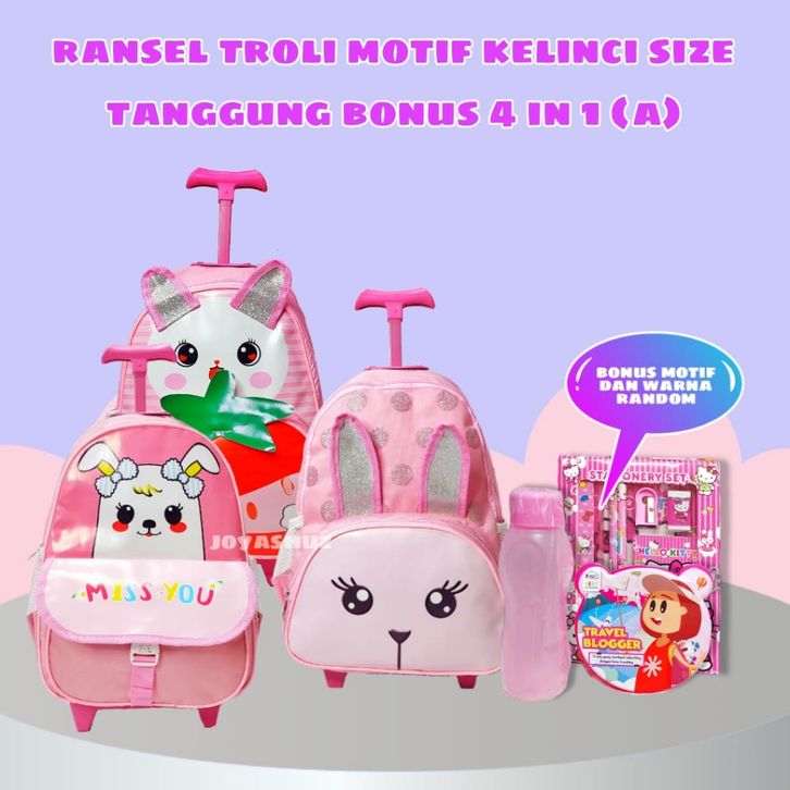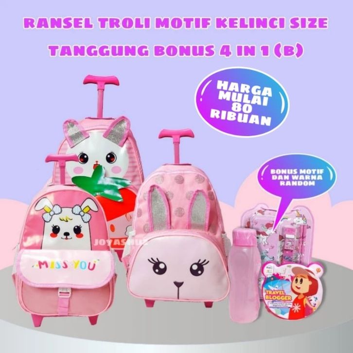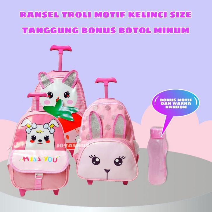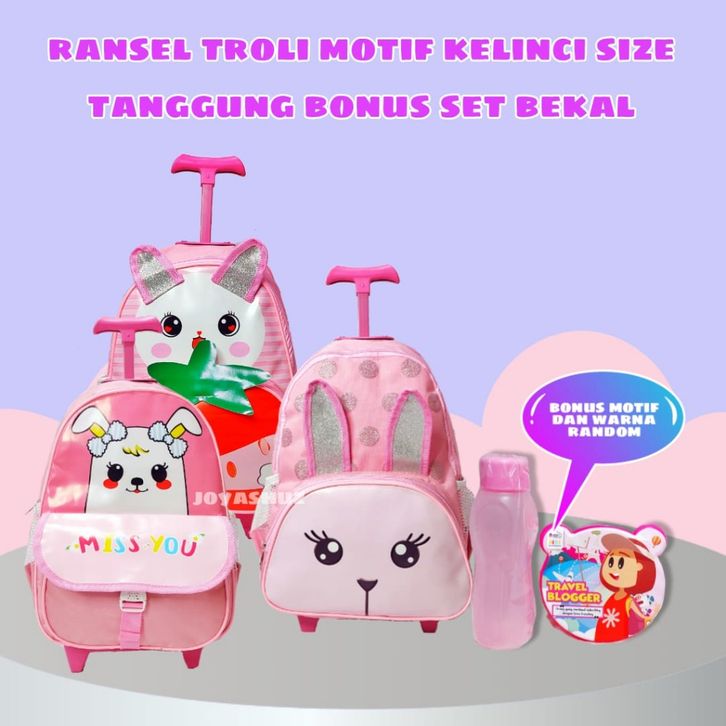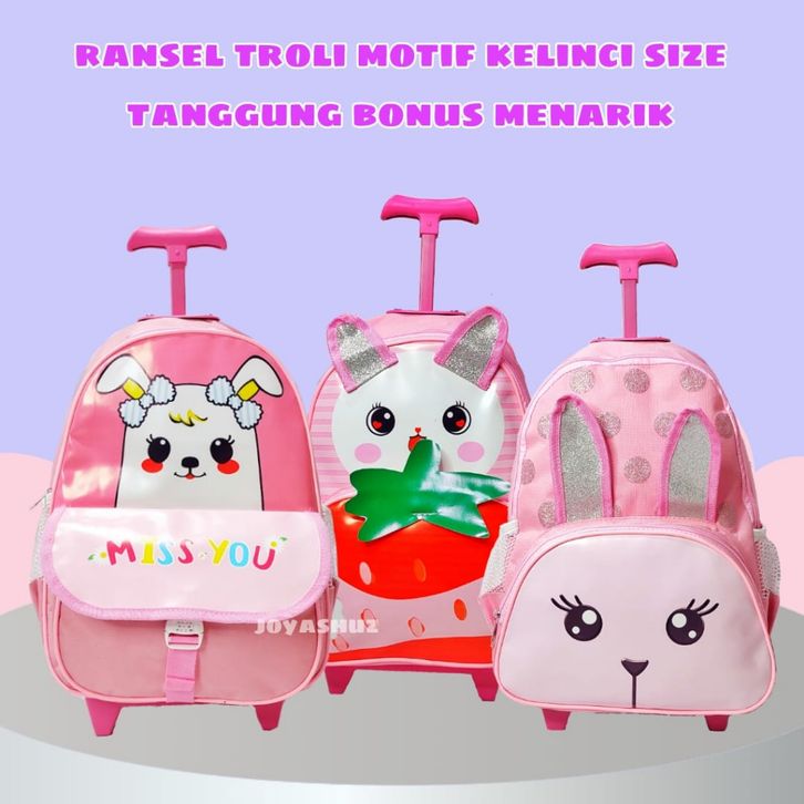 RAMADAN SALE Tas Troli Anak Perempuan Kelinci Gratis Bonus - Tas Troli Rabit Anak TK SD - Tas Ransel Sekolah Anak TK -