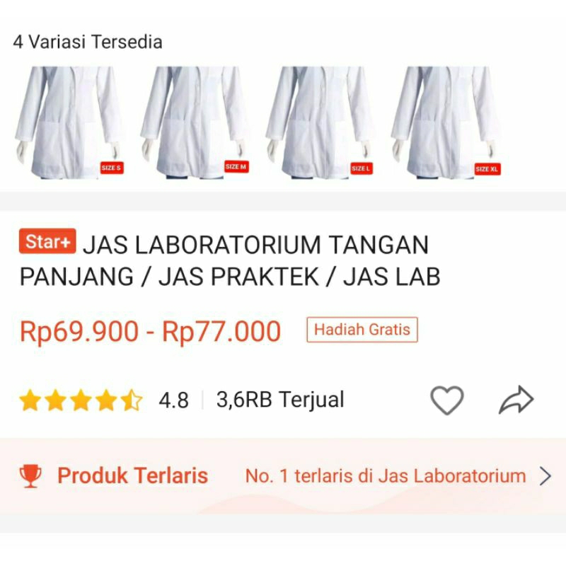 JAS LABORATORIUM TANGAN PANJANG / JAS PRAKTEK / JAS LAB PRAKTEK / JAS LAB RUMAH SAKIT