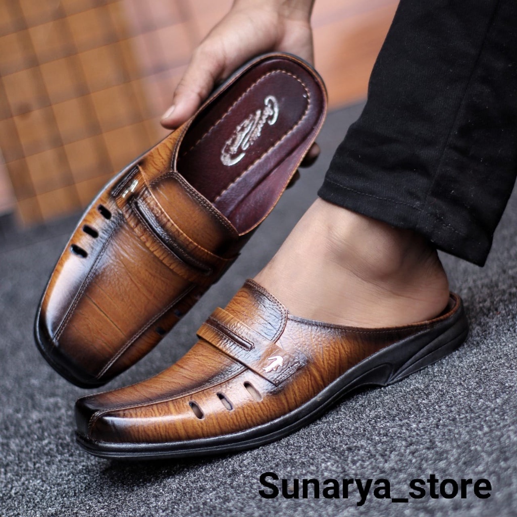 SEPATU SANDAL PRIA KULIT SAPI ASLI SANDAL SLOP BUSTONG