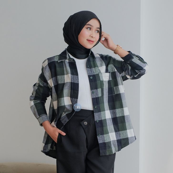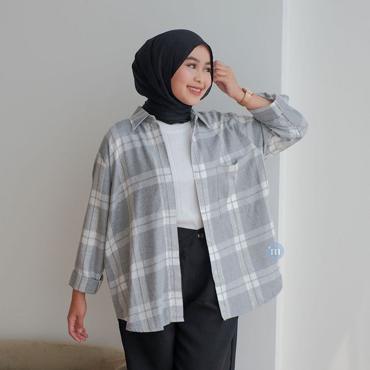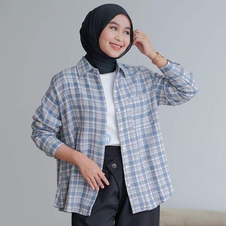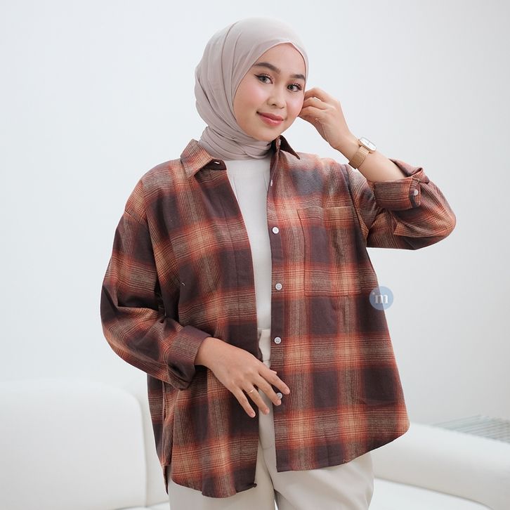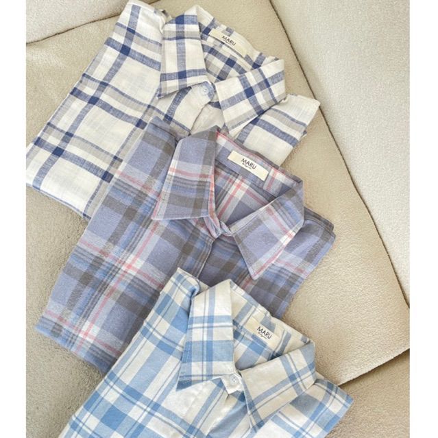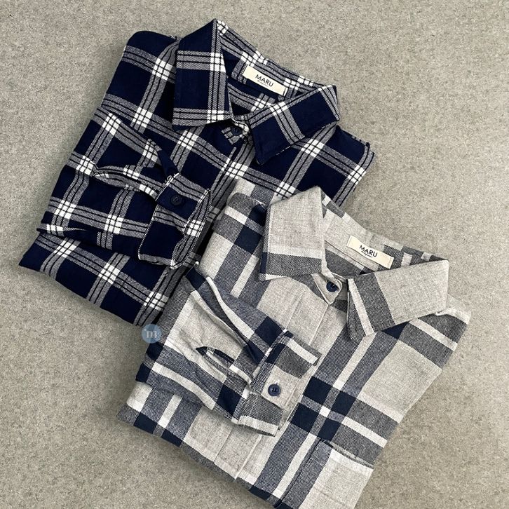 Kemeja Flanel Wanita Kotak-kotak Samsan Maru Shirt Cewe Lengan Panjang Korean Style Terlaris