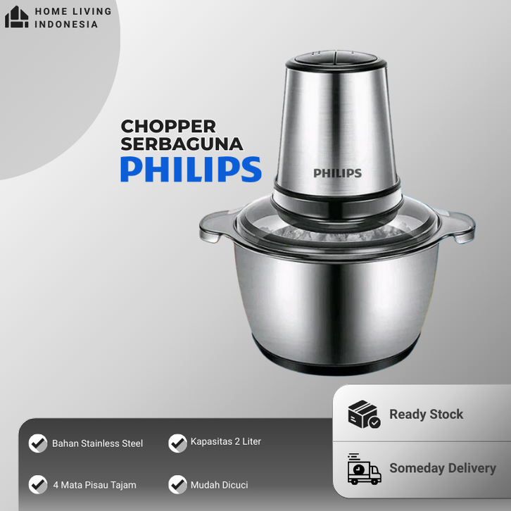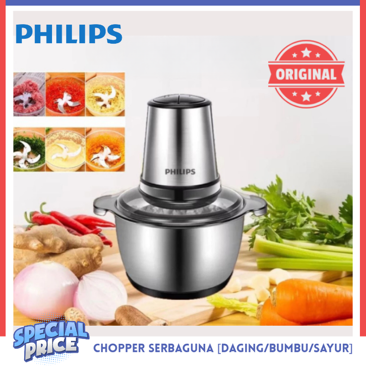 Chopper Daging Bumbu Philips Kapasitas 2 Liter Besar Jumbo Stainless Steel Copper Coper Serbaguna Penggiling Gilingan