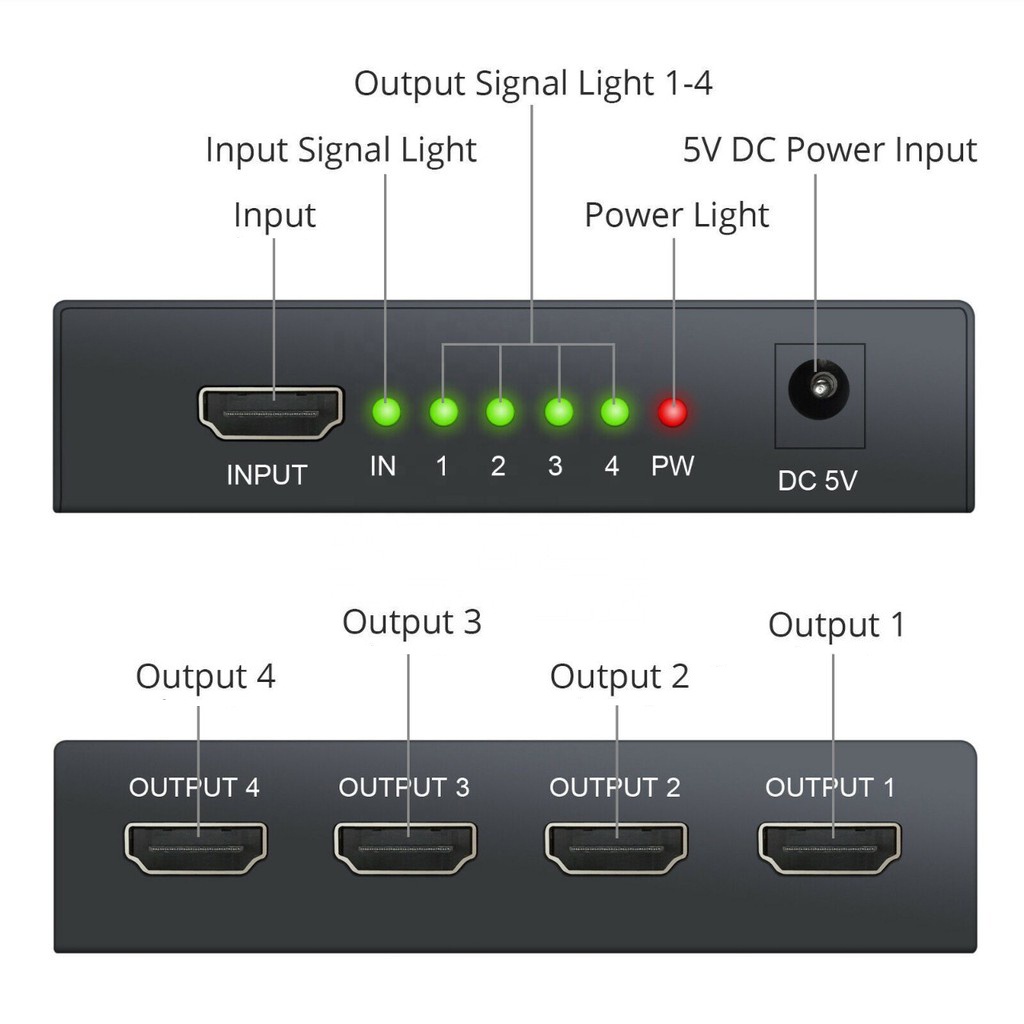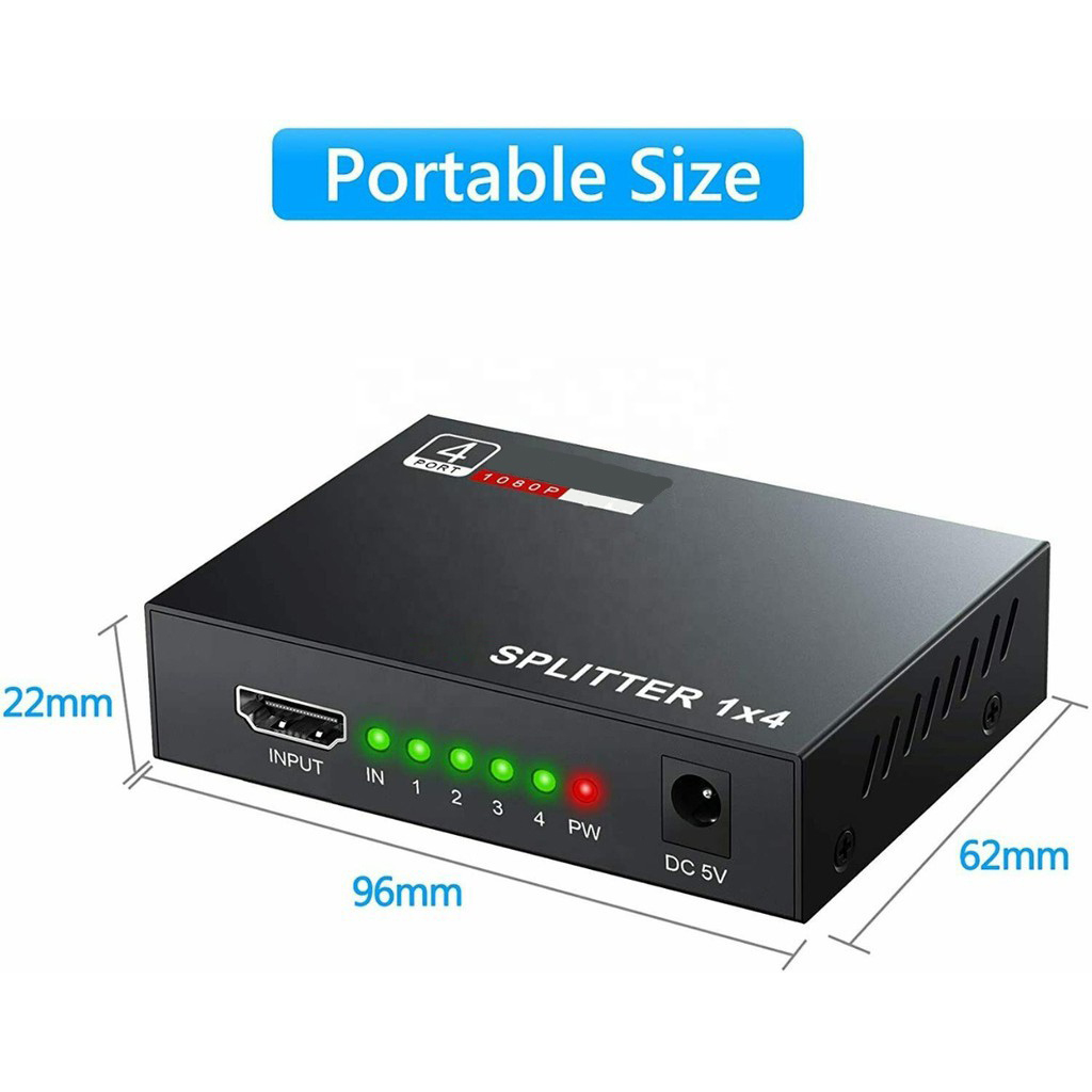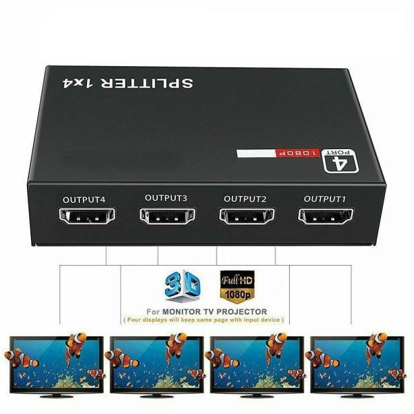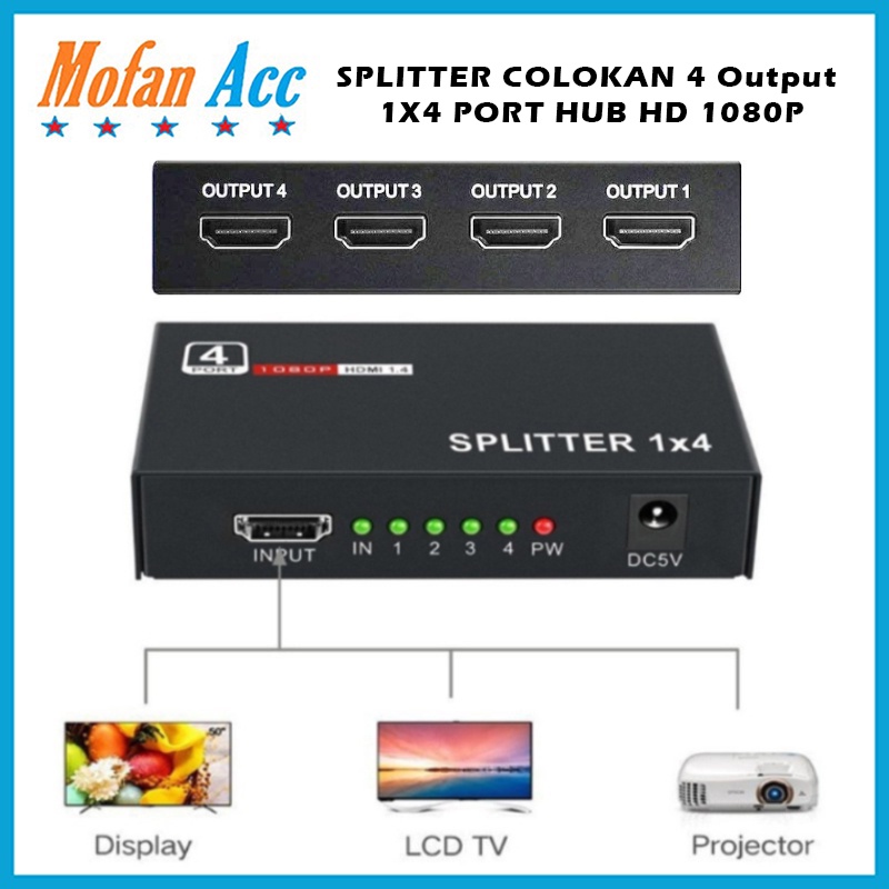 SPLITTER COLOKAN 4 OUTPUT 1X4 PORT HUB HD 4K 1080P 3D SPLIT 1 IN 4 OUT REPEATER AMPLIFIER V1.4 ADAPTER