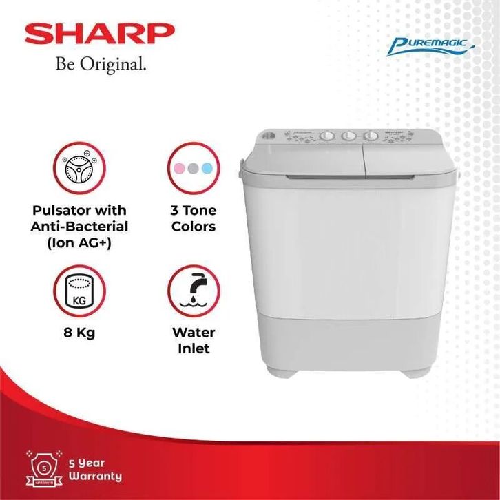 MESIN CUCI 2 TABUNG SHARP KAPASITAS 8 9 7 KG ES-T70MW T80MW T90MW HEMAT LISTRIK LOW WATT BERKUALITAS AWET MURAH
