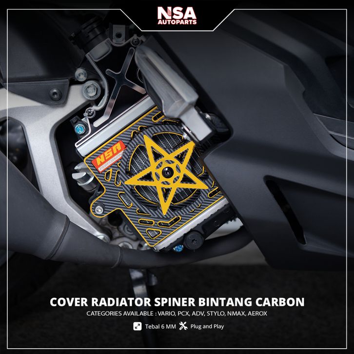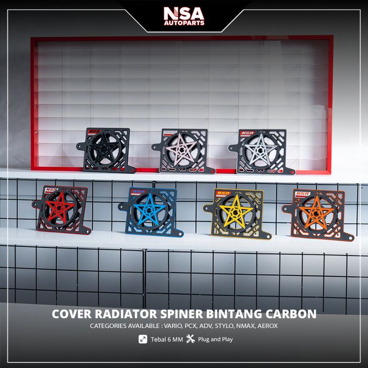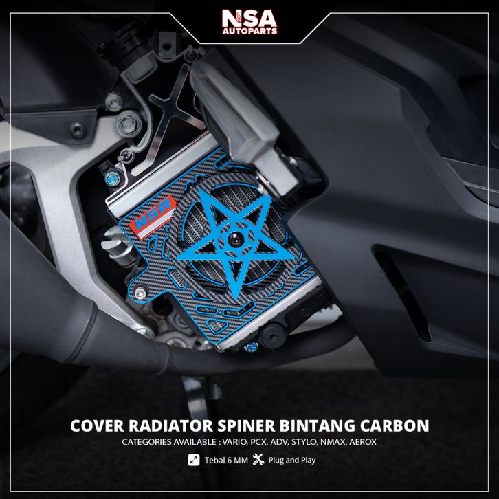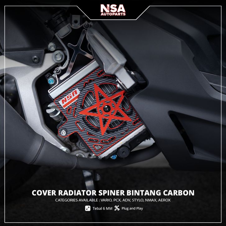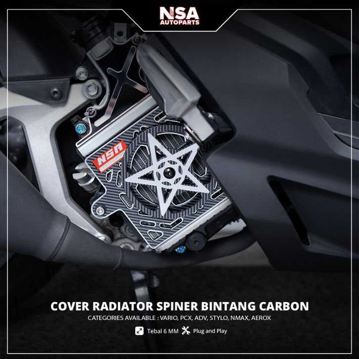 Cover Radiator Spiner Bintang Carbon Series Untuk Vario, PCX, NMAX, Aerox, ADV, Lexi, Stylo 125/150/160 Diskon 30%