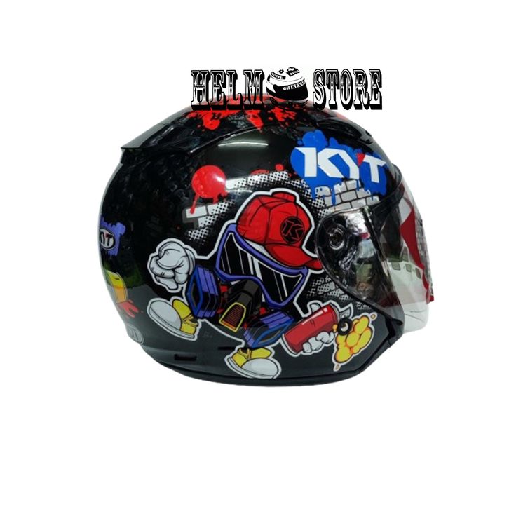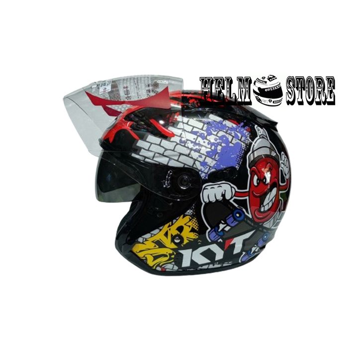 HELM KYT DJ MAXI MOTIF #4 BLACK RED KYT DJMAXI DOUBLE VISOR ORIGINAL