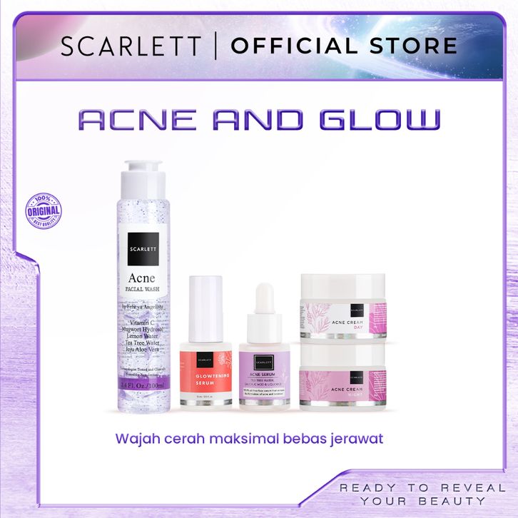 SCARLETT WHITENING ACNE & GLOW KULIT BERJERAWAT | PAKET SKINCARE JERAWAT & MENCERAHKAN WAJAH | SKINCARE MURAH ORIGINAL