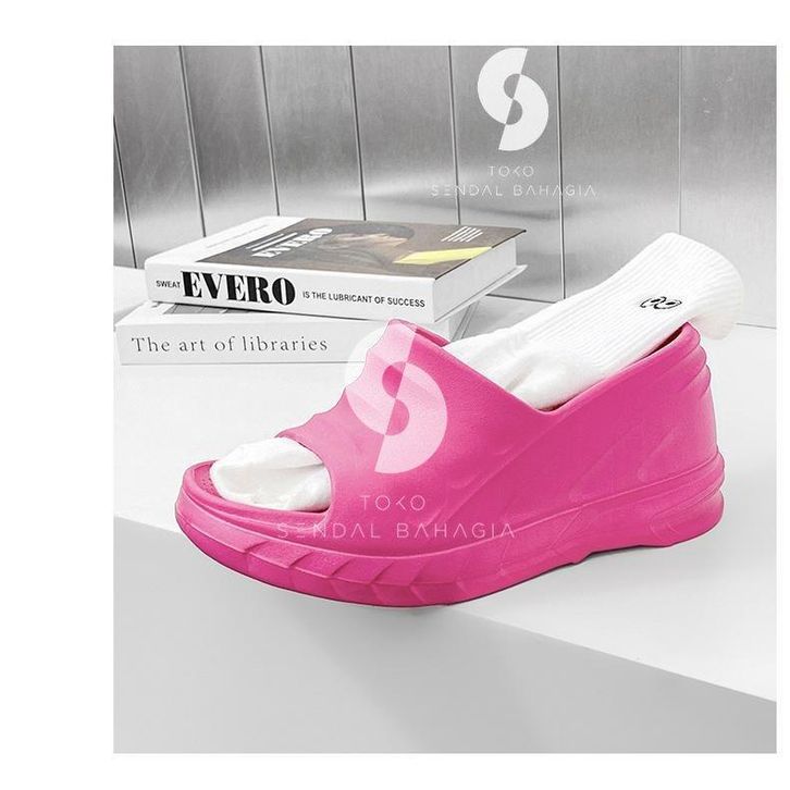 Sendal slop wedges wanita korean import super high heels tinggi 9cm bahan sandal karet ringan 0020