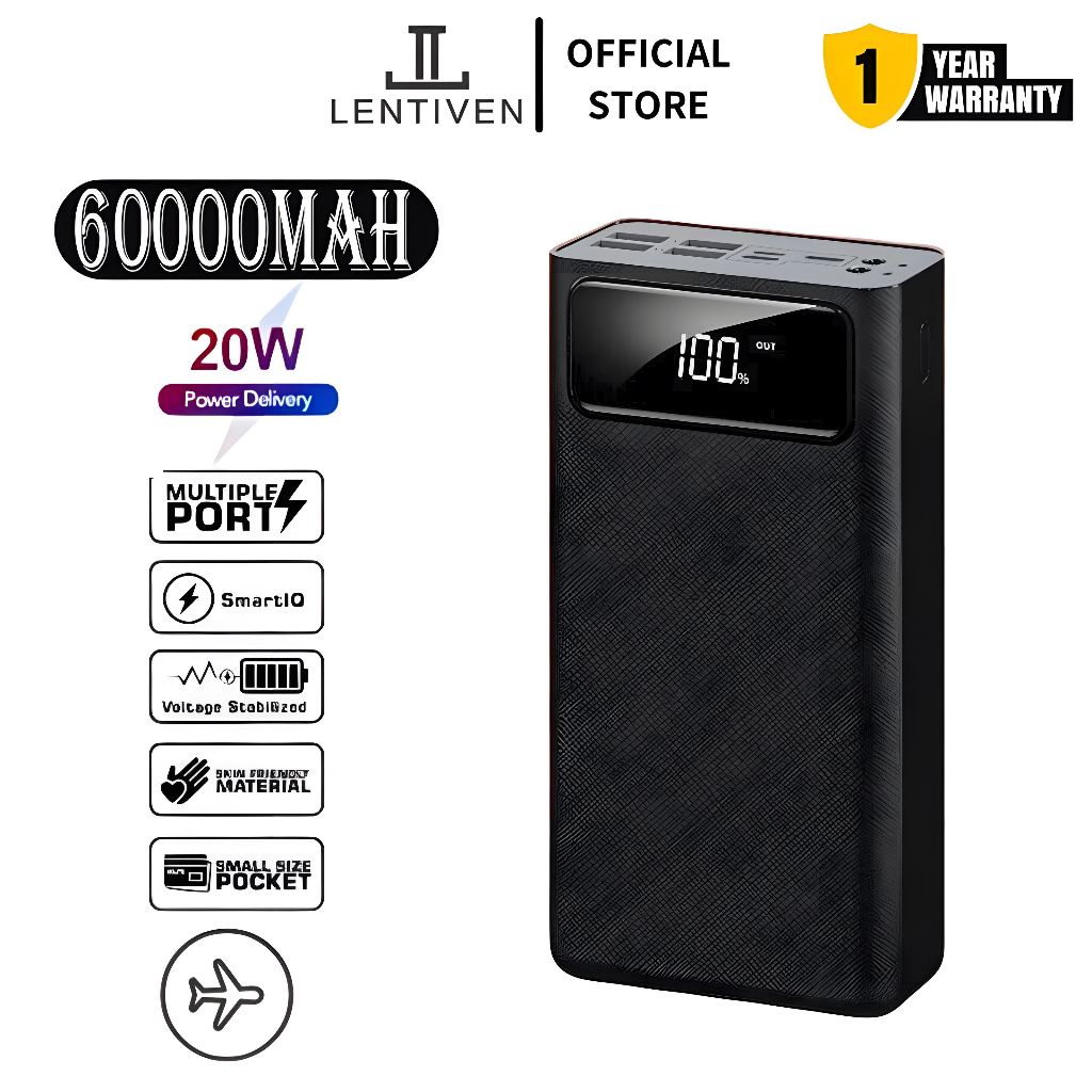 LENTIVEN POWERBANK 60000MAH FAST CHARGING LED CHARGER BATTERY WITH 4 USB