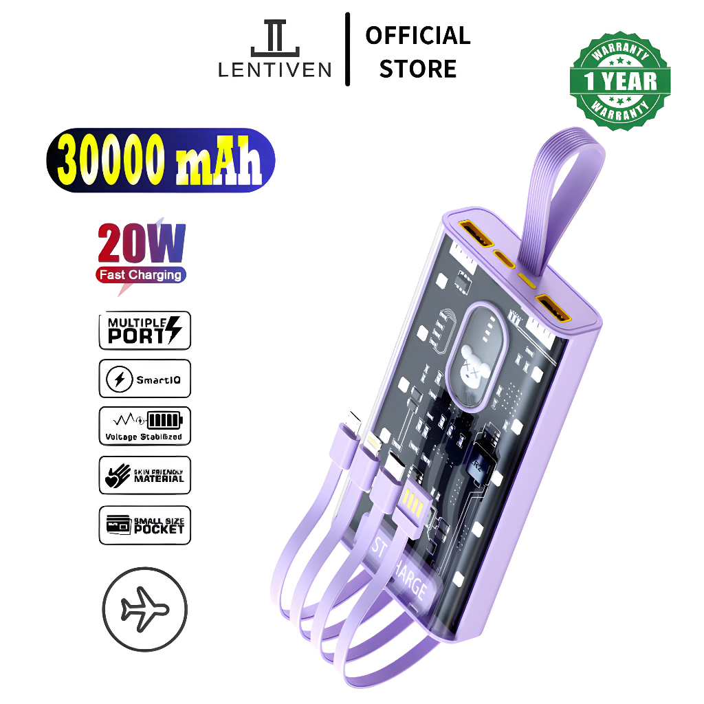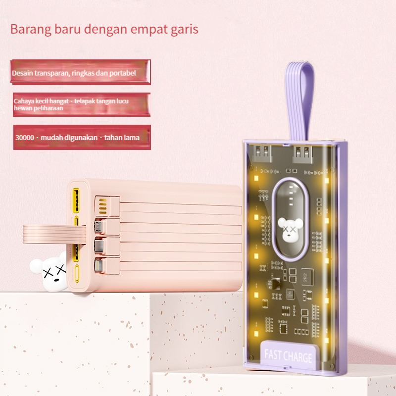 LENTIVEN POWERBANK 30000 MAH 4 KABEL CUTE LED PORTABLE FAST CHARGER