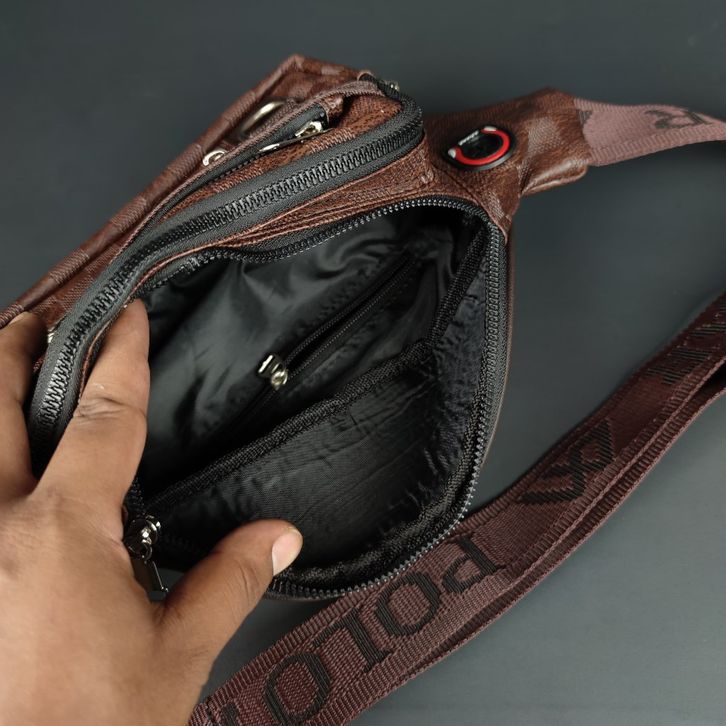 Tas Selempang Bahu Waistbag Polo Amstar Bahan Kulit PU Slingbag Waist Bag Aksesoris Cowok Kekinian Muat HP Dompet Bagus