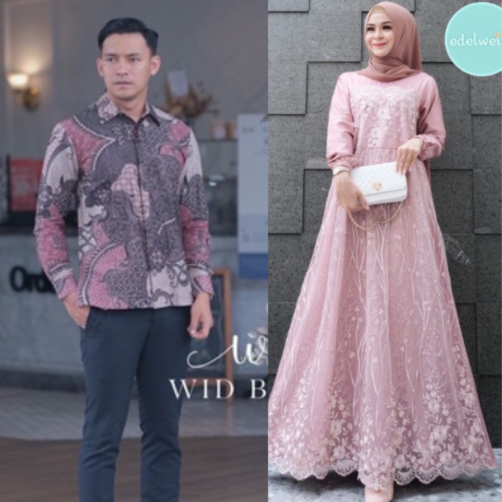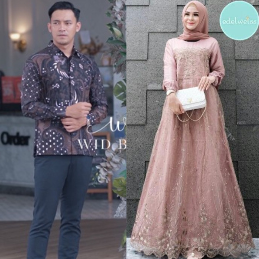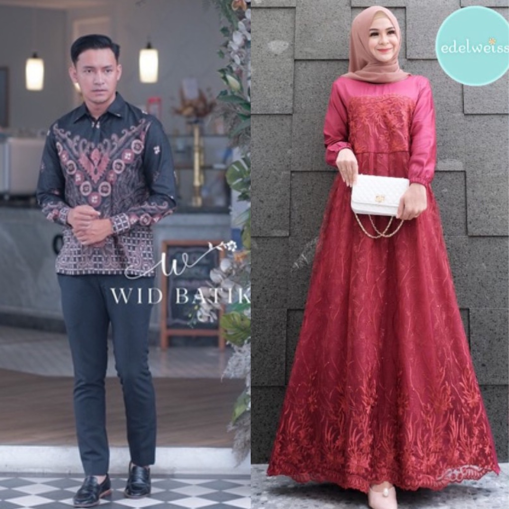 ADA JUMBO - COUPLE GAMIS BRUKAT PREMIUM GAMIS BRUKAT DRESS BRUKAT COUPLE LAMARAN KONDANGAN KEMEJA BATIK COUPLE BRUKAT