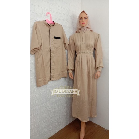 SETELAN BAJU COUPLE GAMIS PEREMPUAN DAN KEMEJA PRIA CP RELINE BAHAN SHAKILA PREMIUM AKSEN MUTIARA TEMBAK
