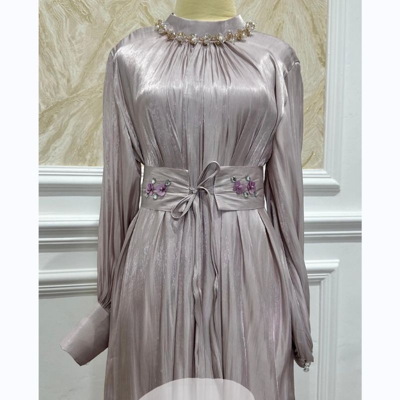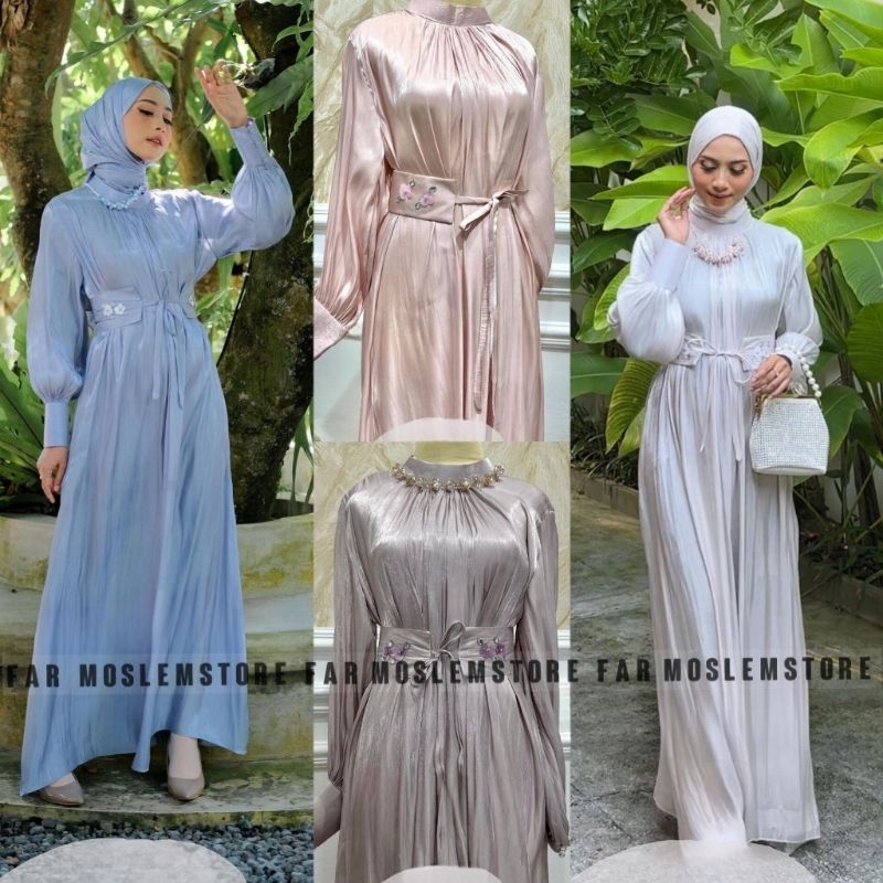 CASANDRA DRESS SHIMMER ABAYA PREMIUM/GAMIS SHIMER FREE BELT/FASHION MUSLIM WANITA KEKINIAN/FAR MOSLEMSTORE