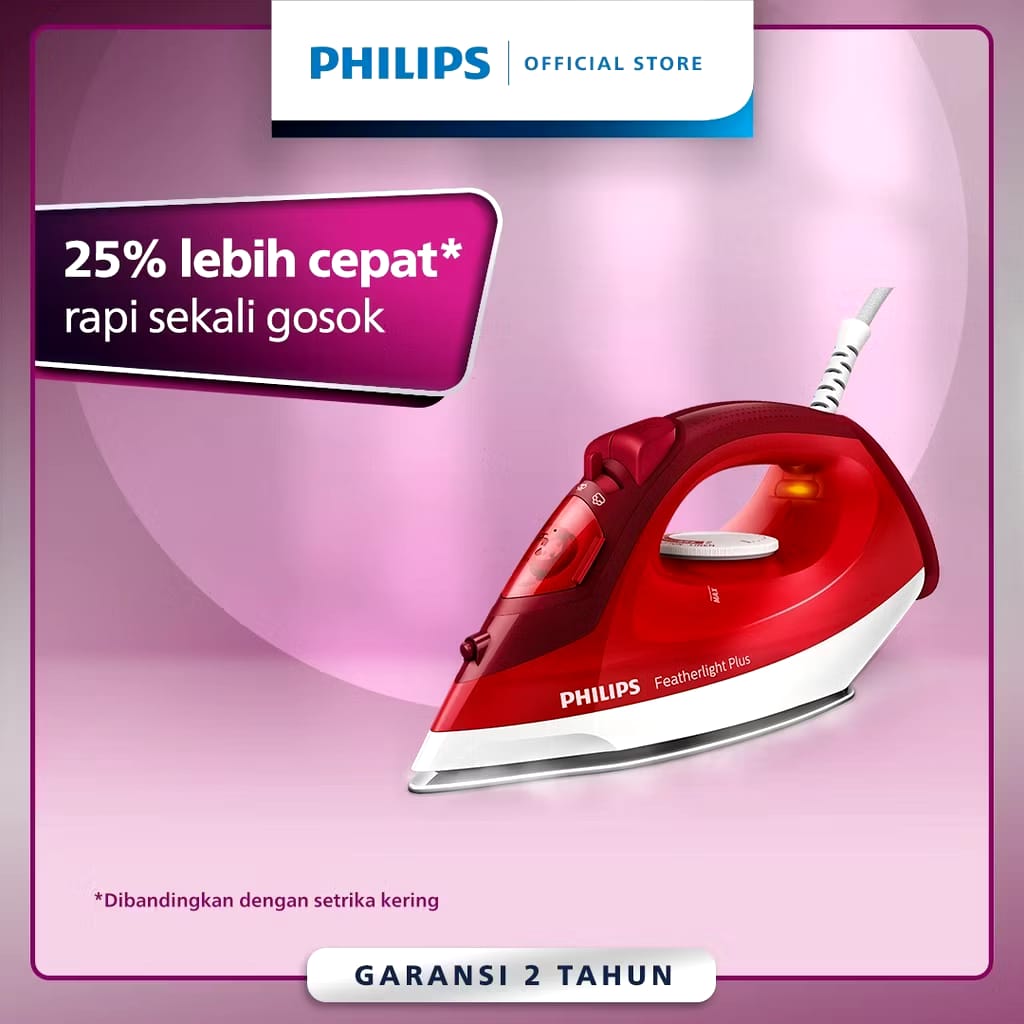 Philips Setrika Uap GC1424/45 Merah - Setrika Uap Optimal, Tapak Non-Stick