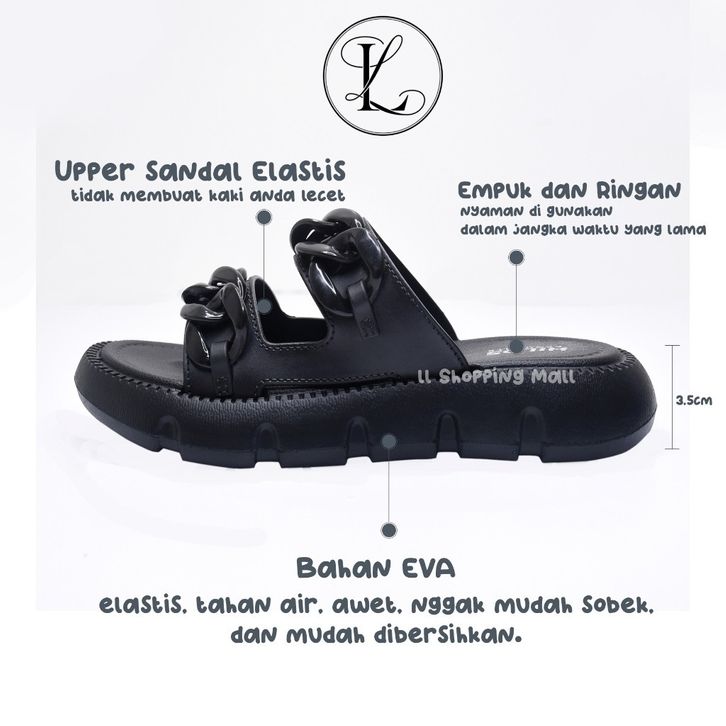 SLIDE SANDAL BY HILOS - SANDAL SELOP WANITA MODEL KOREA READY STOCK TIPE WEDGES ANTI AIR DAN ANTI SELIP
