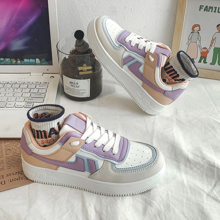 Beeyoo Sepatu Sneakers Wanita Fashion Korea Casual Sport Shoes Warna Pastel Kets Sepatu Pink WK116