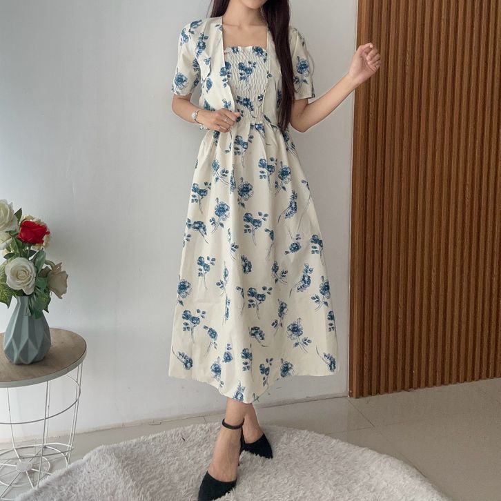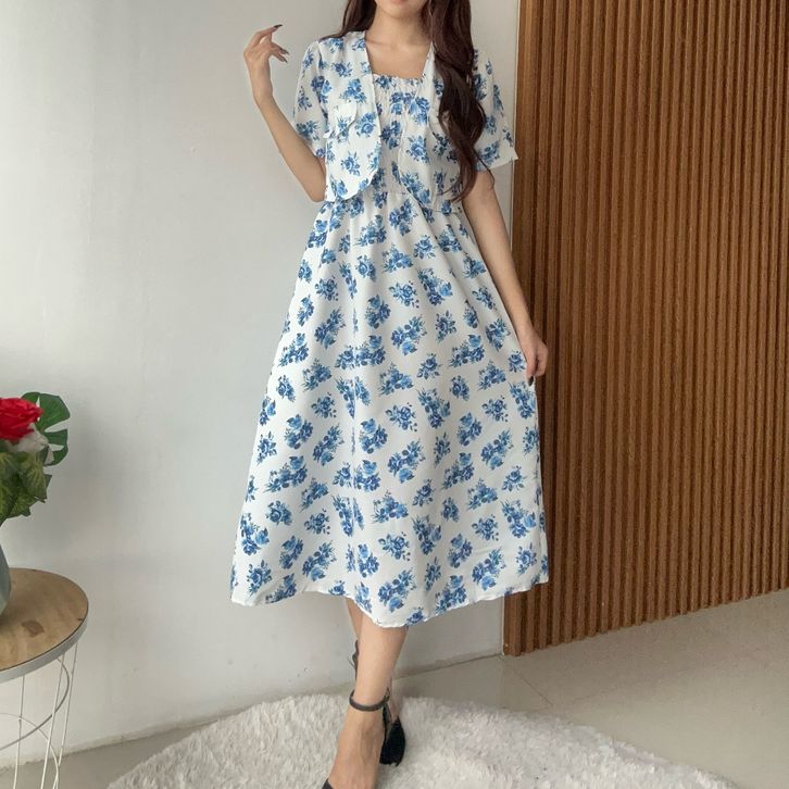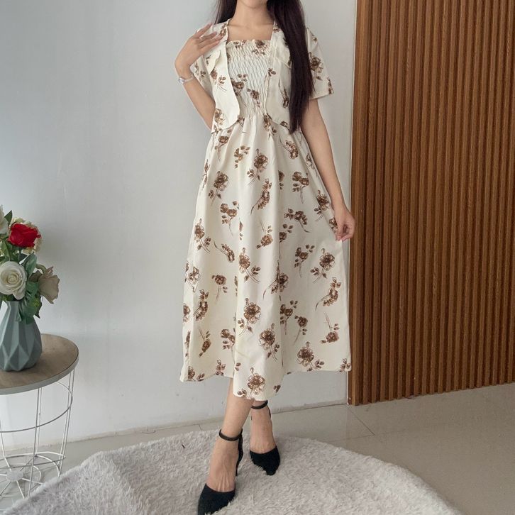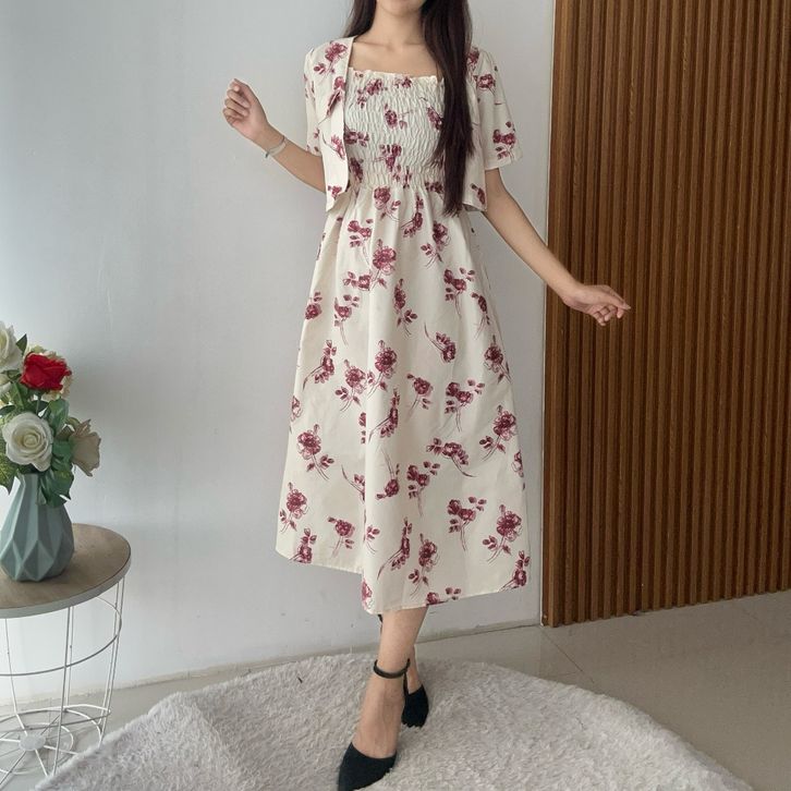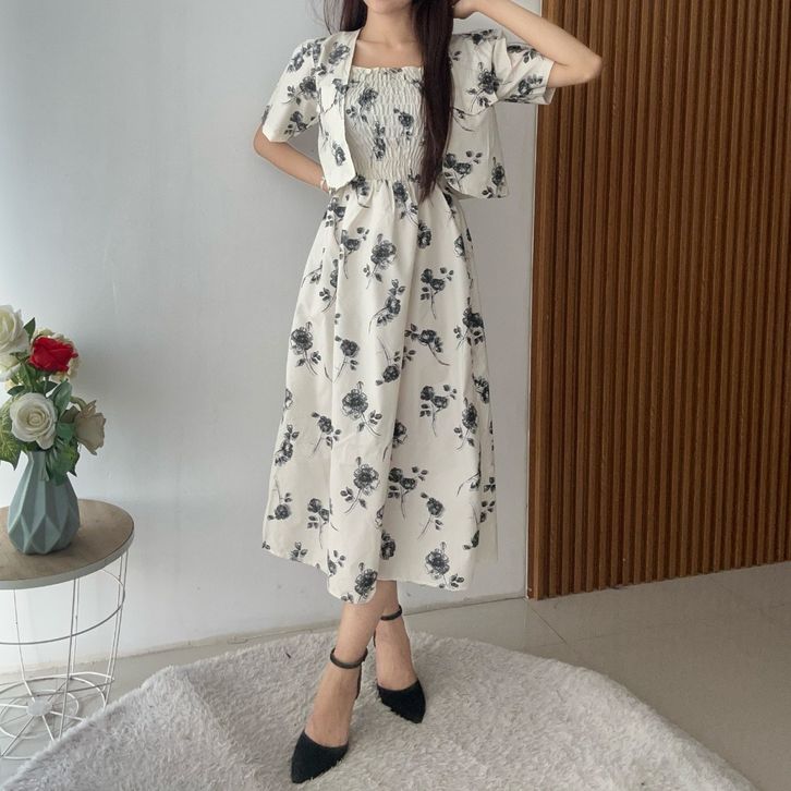 SETELAN WANITA KEKINIAN SETELAN WANITA DEWASA KOREAN STYLE SET ROK WANITA SET OUTER DRES WANITA BUNGA 2 IN 1 (Pre Order)