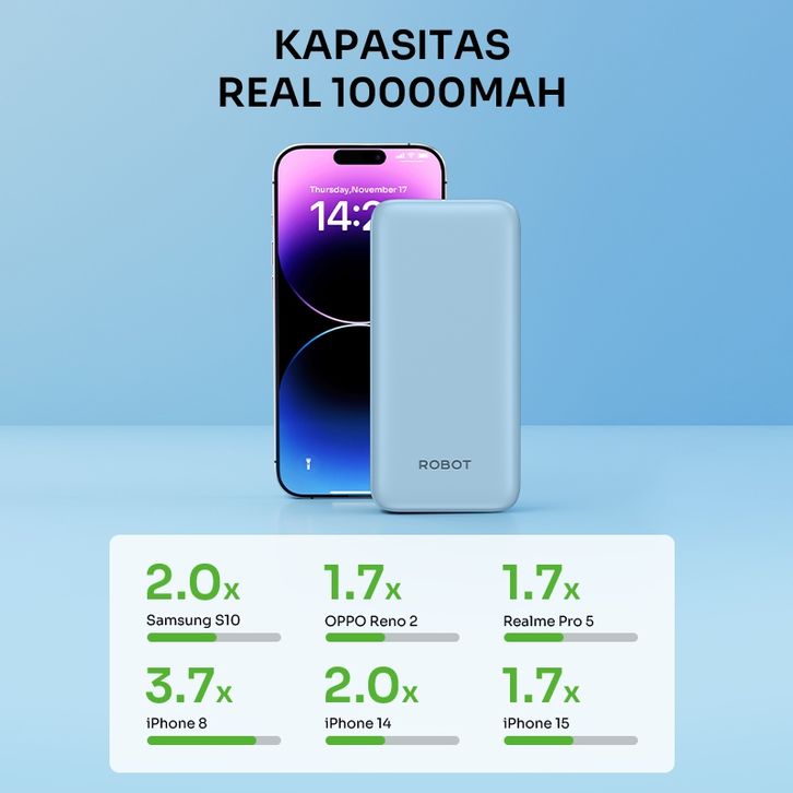 Power bank fast charging - 10000mAh RT180 (Versi Baru RT12) Dual Input - Power Bank Robot Original - Power Bank Robot