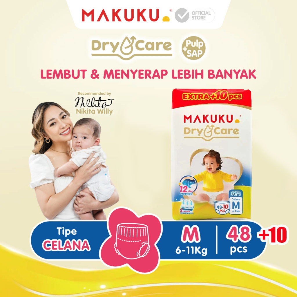 MAKUKU Dry Care Pants NB-S54 M48+10 L44+10 XL36+6 XXL34+6 - Popok Bayi Tipis Cepat Kering Tipe Celana
