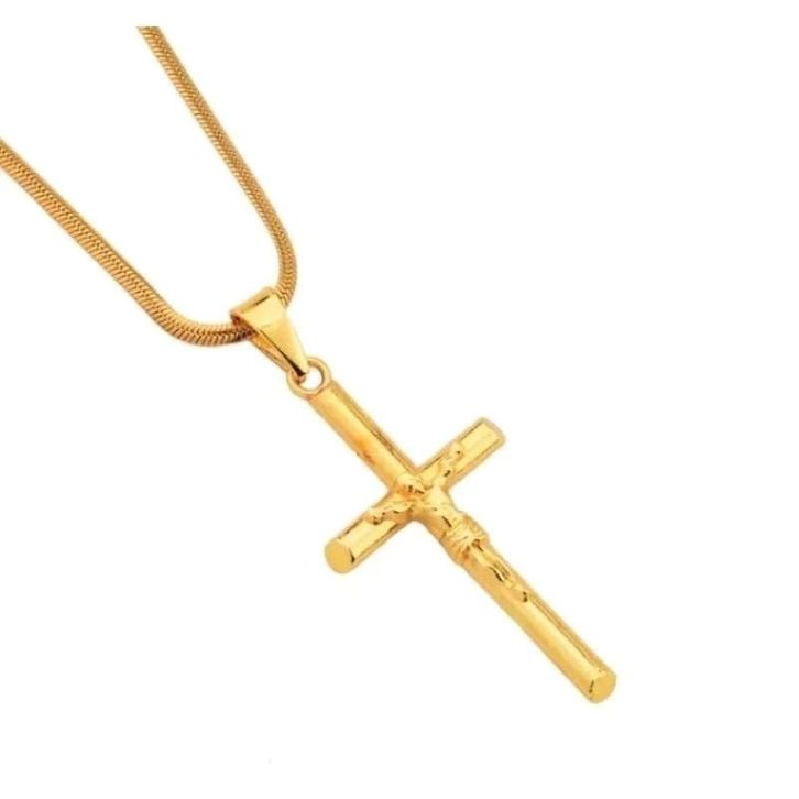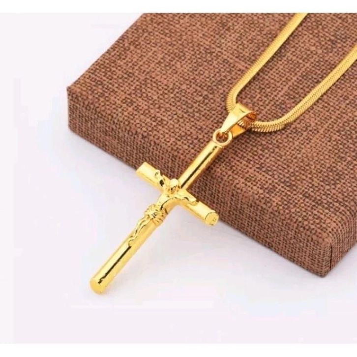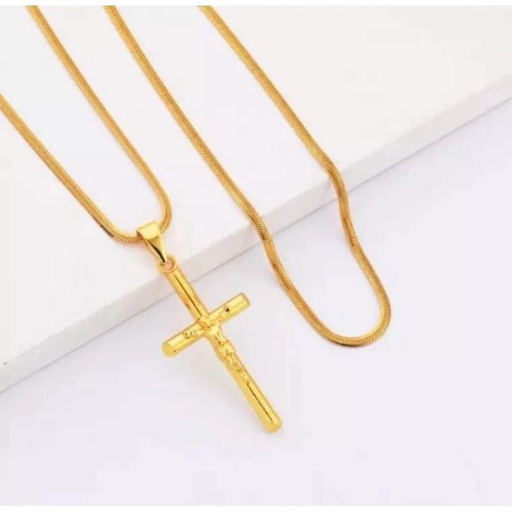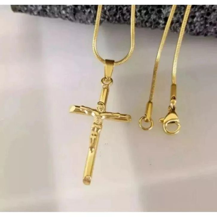 KALUNG SALIB GOLD RANTAI GEPENG TITANIUM ANTI KARAT PRIA DAN WANITA