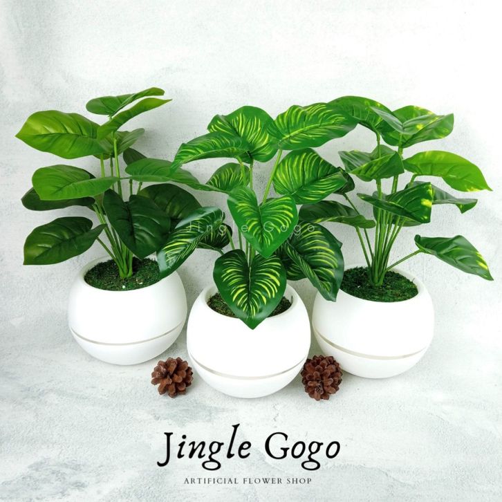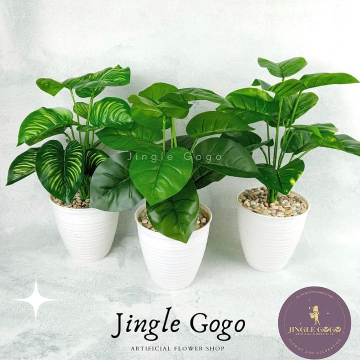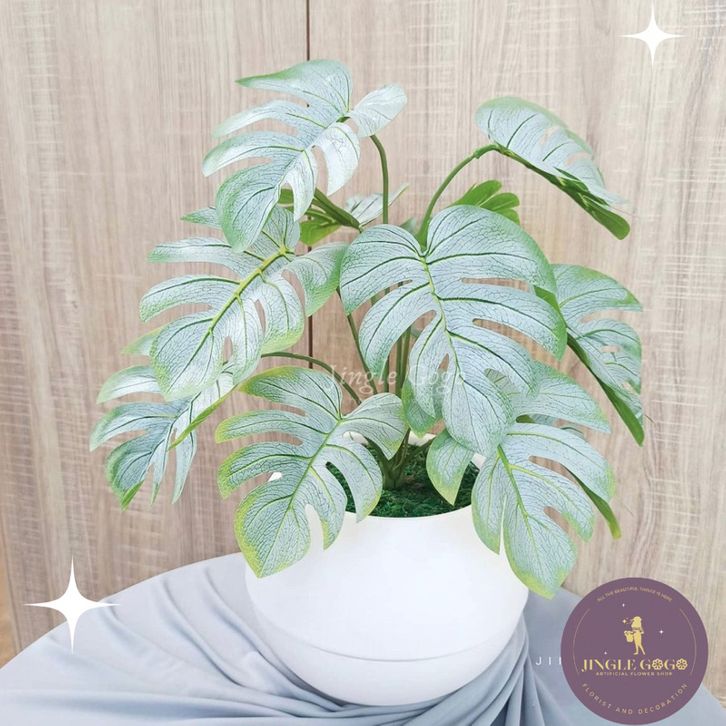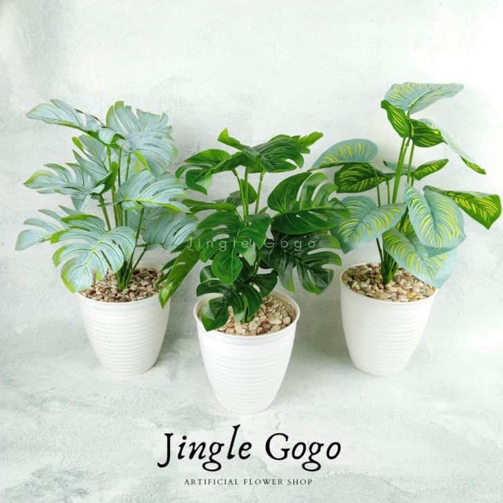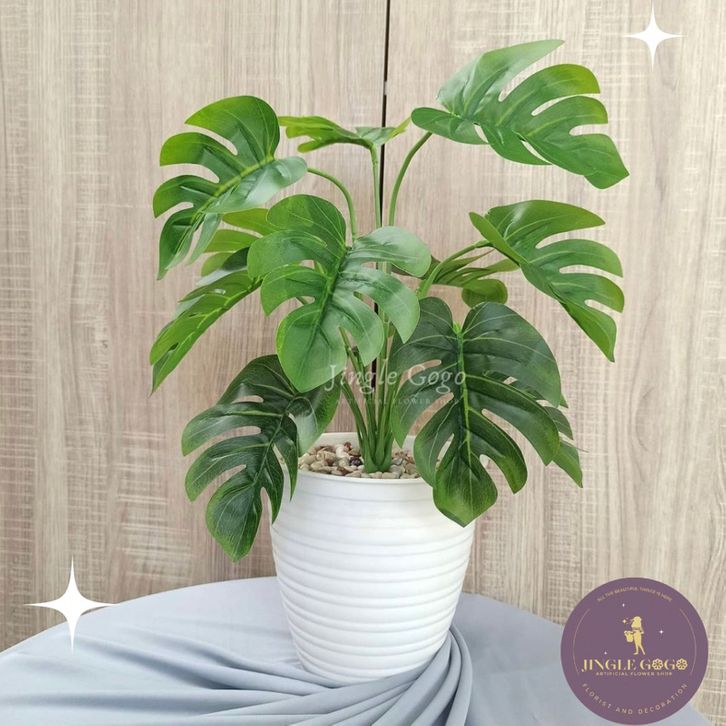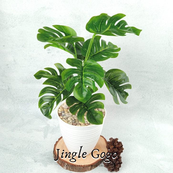TANAMAN HIAS ARTIFICIAL DAUN PLASTIK MONSTERA RIMBUN SUDAH TERMASUK POT HIASAN DEKORASI RUMAH TERLARIS