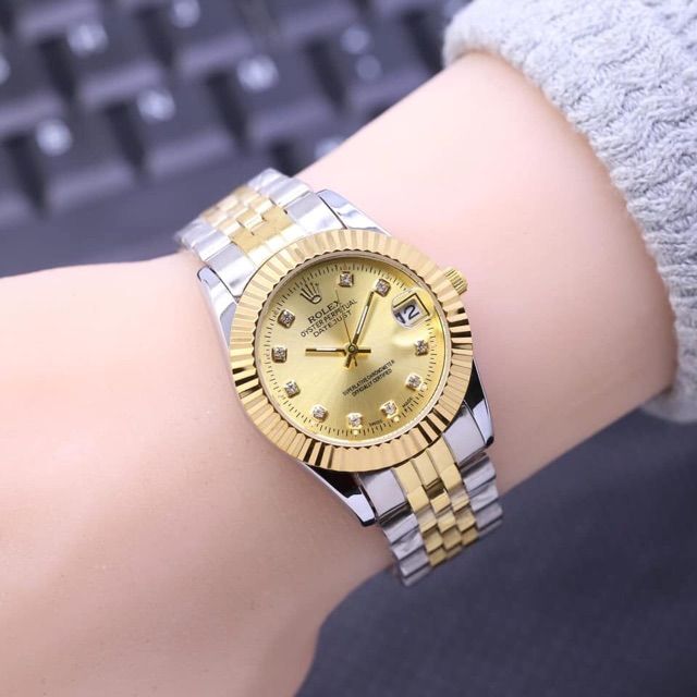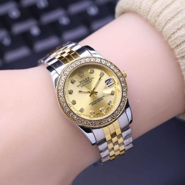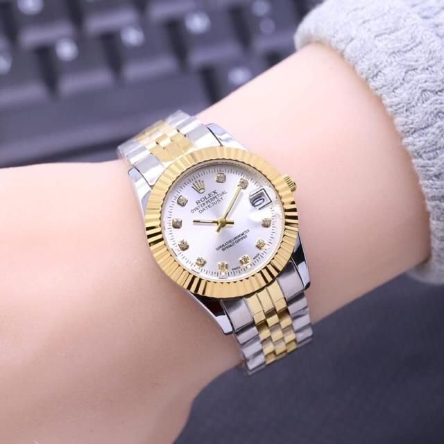 Jam Tangan Cewe Rolex Rantai Stenlis Tanggal Aktif Arloji Analog Elegan Fashion Aksesoris Kekinian