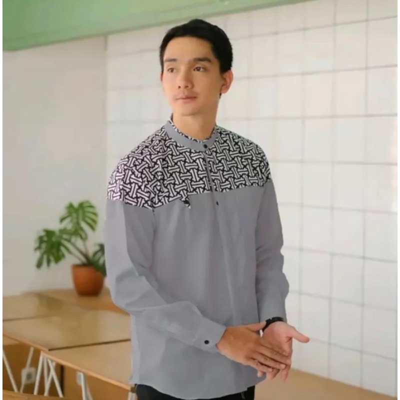 Baju Koko Pria Dewasa Lengan Panjang Motif Batik Bata terbaru