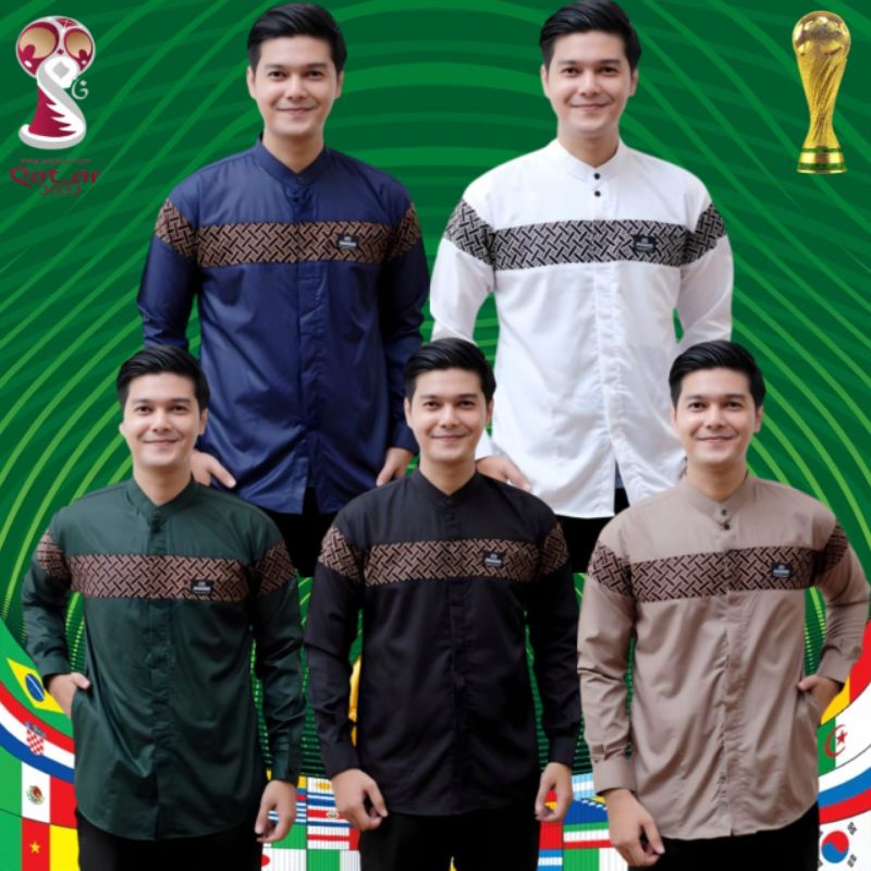 Baju Koko Pria Lengan Panjang Motif Kombinasi Batik Kobata Qynang Terbaru