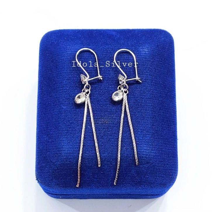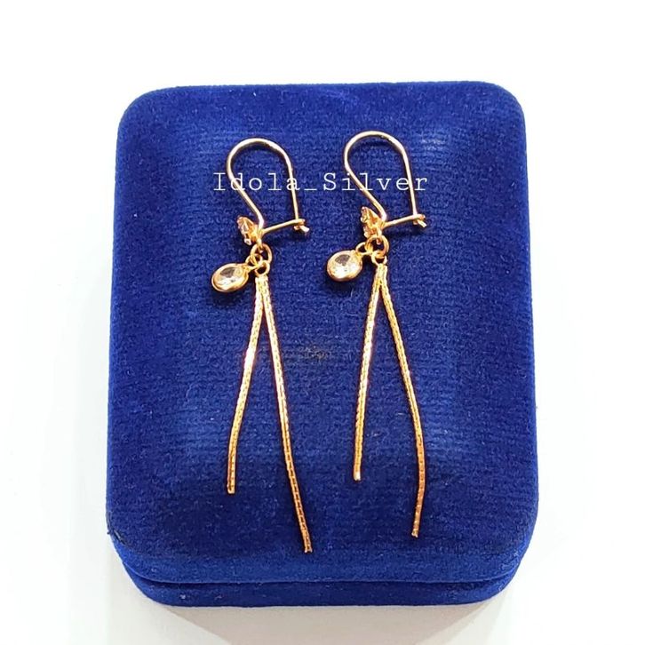 ANTING PERAK ASLI SILVER 925 LAPIS EMAS MODEL AGOGO ITALY BATU PUTIH - PERHIASAN PERAK WANITA